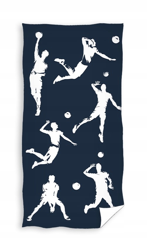 Сучасний візерунок, що показує динамічні силуети волейболістів в білому кольорі, на темному фонді - рушник ідеально підходить для любителів волейболу та активного способу життя.
