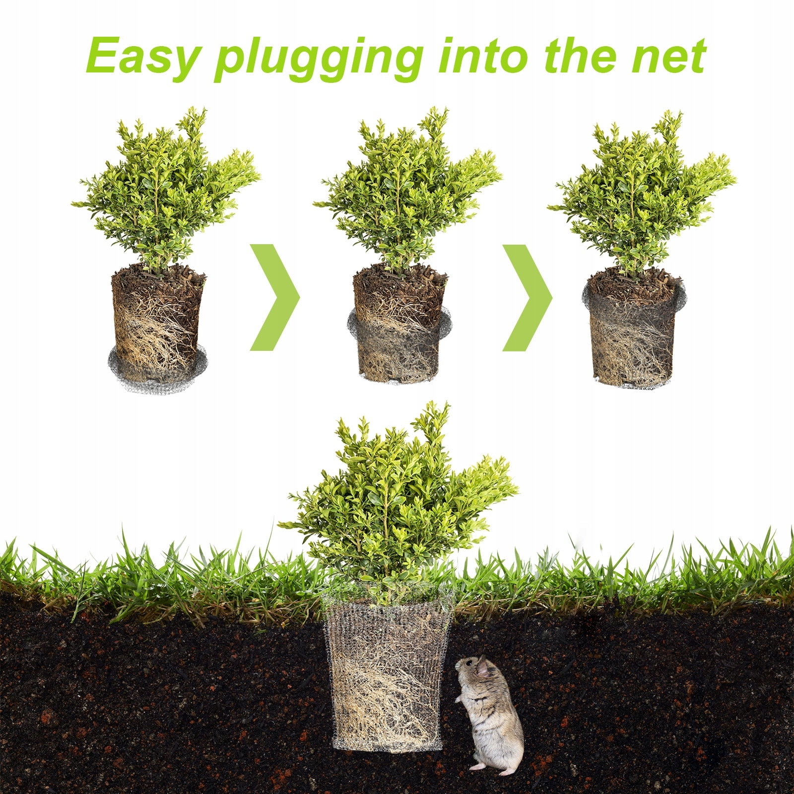 2. Товста сітка: корінь, що захищає кошик, має високу щільність стібків, ефективно захищаючи дерева, чагарники, квіти та цибулю від Вол, Моль та Суславамі.
