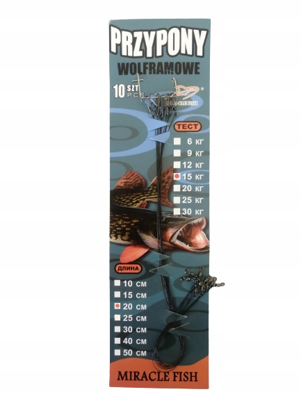 МІЦНІ ВОЛЬФРАМОВІ ОСНАЩЕННЯ ДЛЯ ЩУКИ, СУДАК 15КГ/20СМ - 10 ШТ