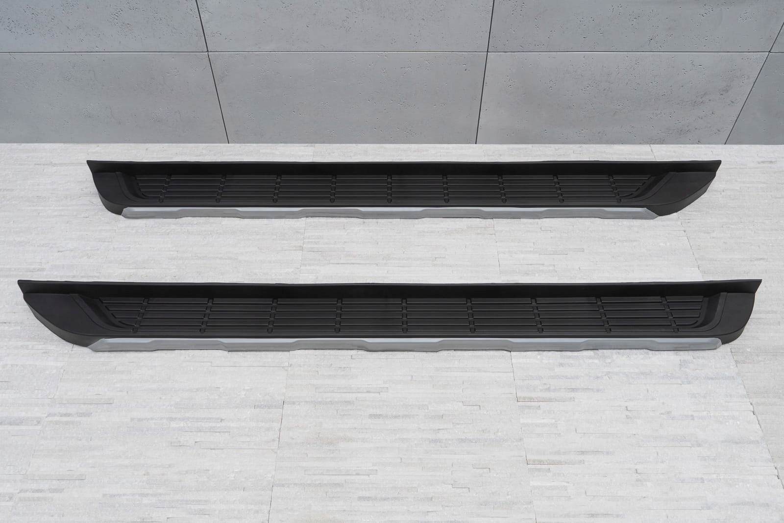 Автомобільні підніжки для VW AMAROK - ідеальне рішення для людей, які цінують комфорт і зручність. Виготовлені з високоякісного алюмінію та автомобільного пластику ABS, вони забезпечують не тільки елегантний зовнішній вигляд, але й стійкість до погодних умов. Завдяки цьому підніжки виходять міцними і довговічними, при цьому надовго зберігають свій зовнішній вигляд. Бічні підніжки підвищують комфорт посадки та висадки, що особливо корисно для дітей, людей похилого віку або людей з обмеженими можливостями пересування, а також забезпечують більш зручне робоче положення при розміщенні вантажу на даху автомобіля. Вантажопідйомність на одну сторону становить 160 кг, що гарантує, що підніжки витримають набагато більше стандартного навантаження.
