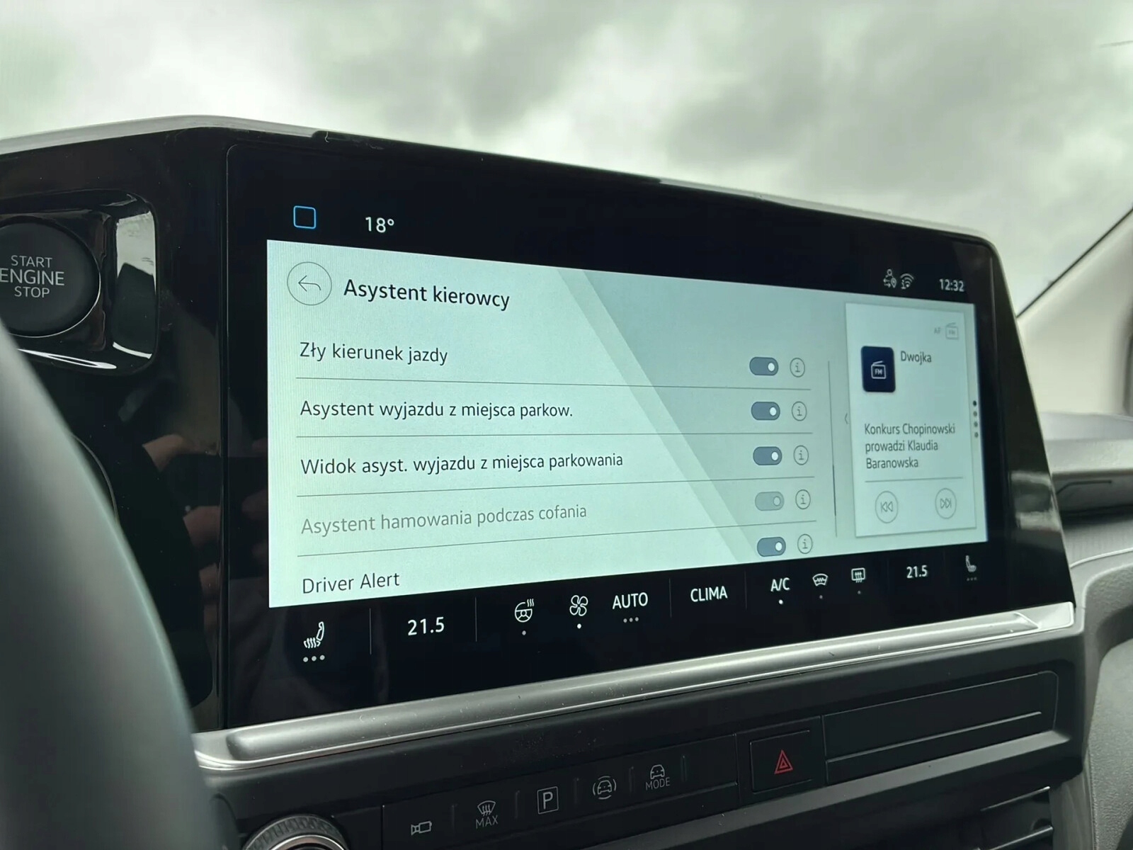 3-х зонний автоматичний кондиціонер в кабіні. водіїв і переднього пасажирського автомобіля з цифрами. панель керування у другому рядку