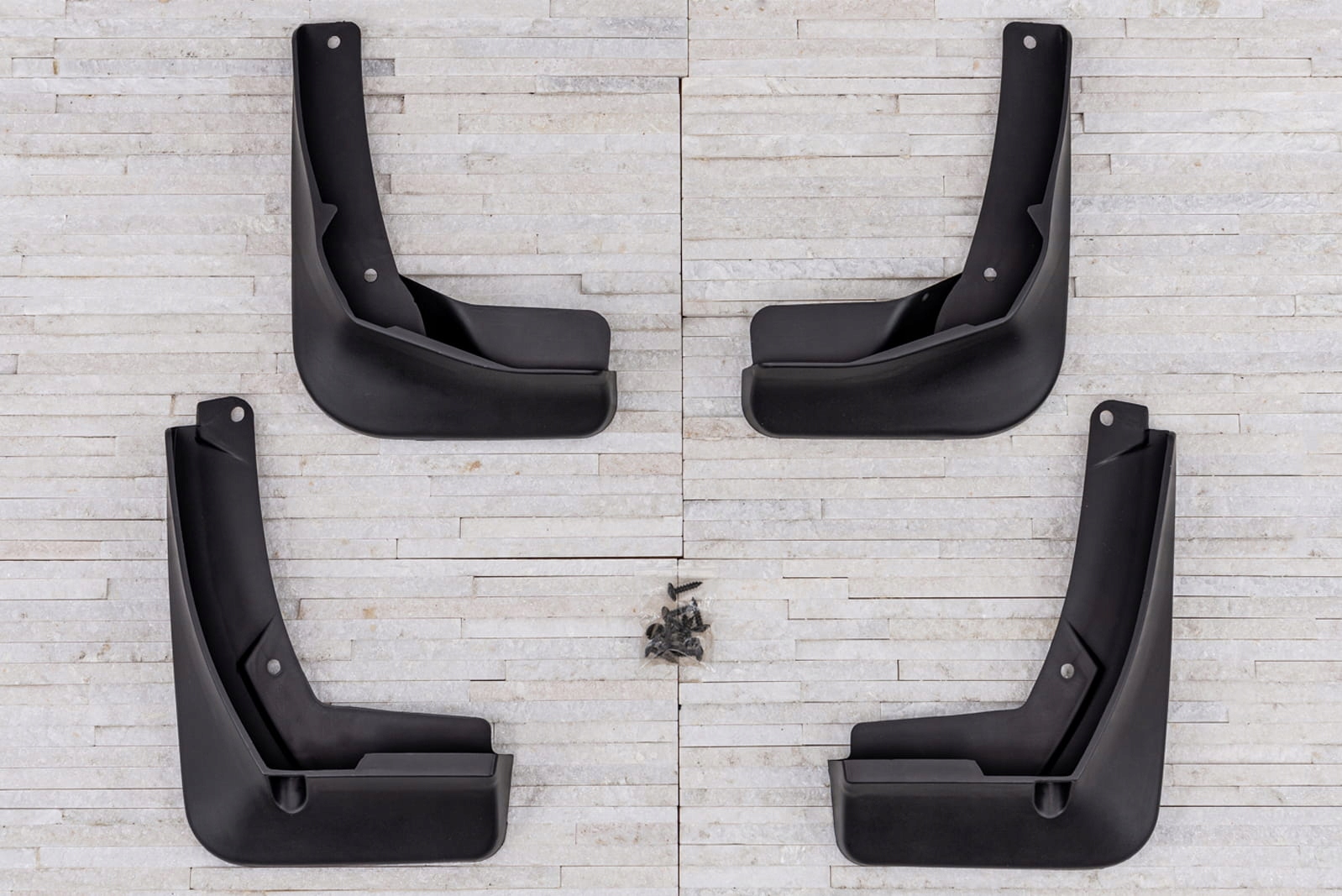 У набір входить набір із чотирьох бризговиків та елементів кріплення. Виріб встановлено на заводські місця, без додаткових доробок. Ми рекомендуємо установку в професійній майстерні.