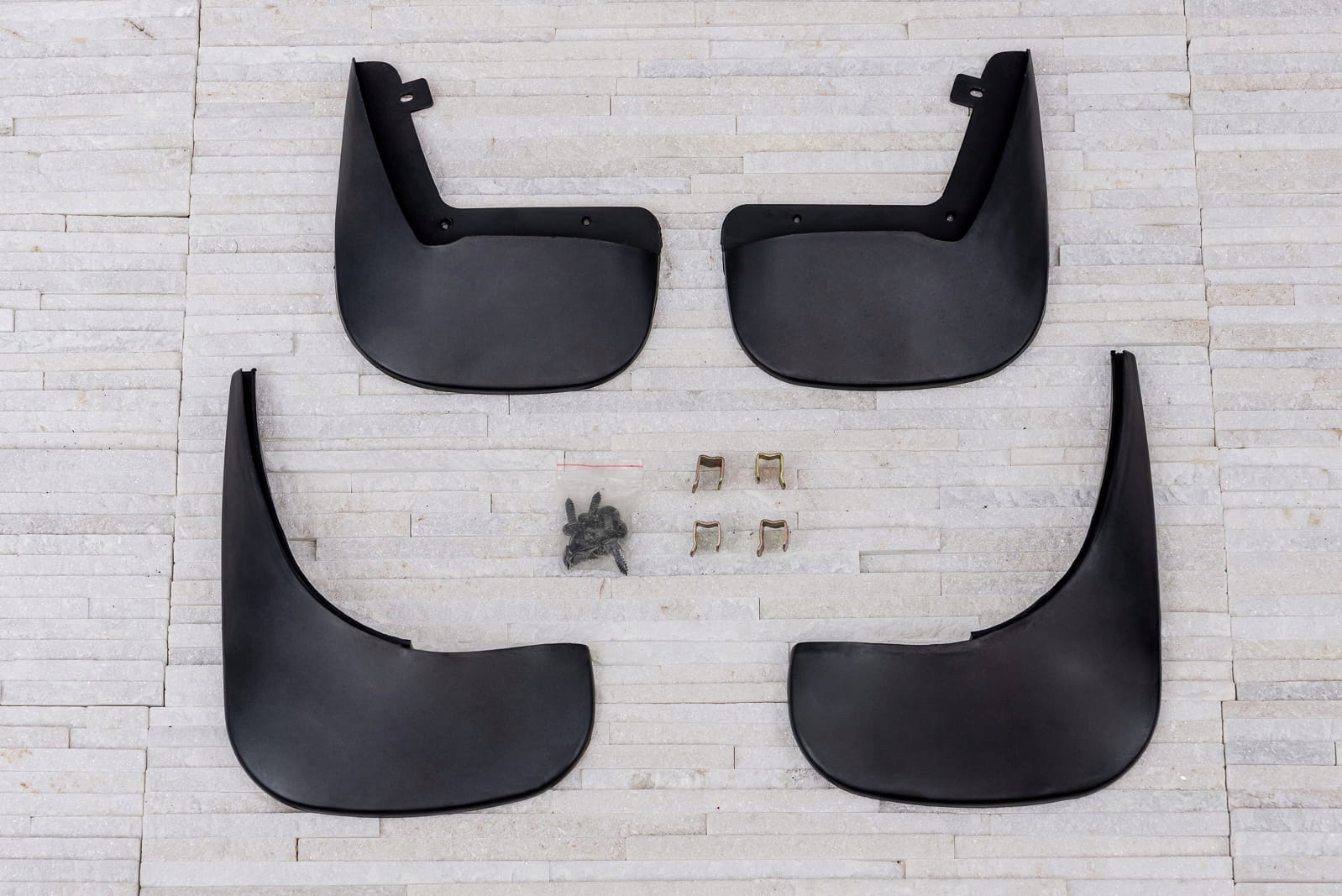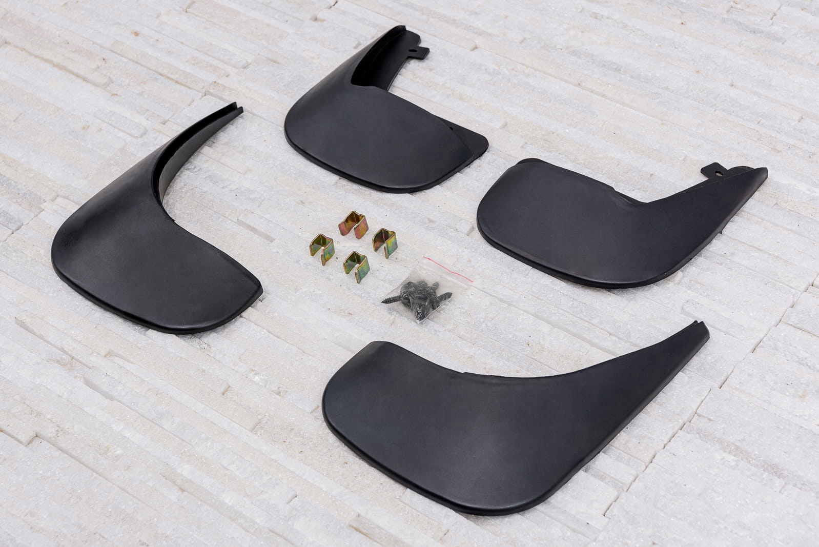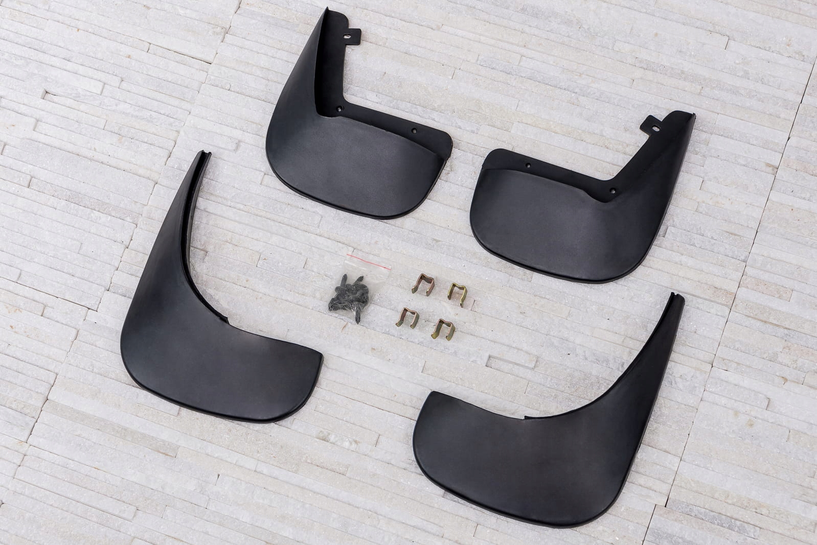 У набір входить набір із чотирьох бризговиків та елементів кріплення. Виріб встановлено на заводські місця, без додаткових доробок. Ми рекомендуємо установку в професійній майстерні.