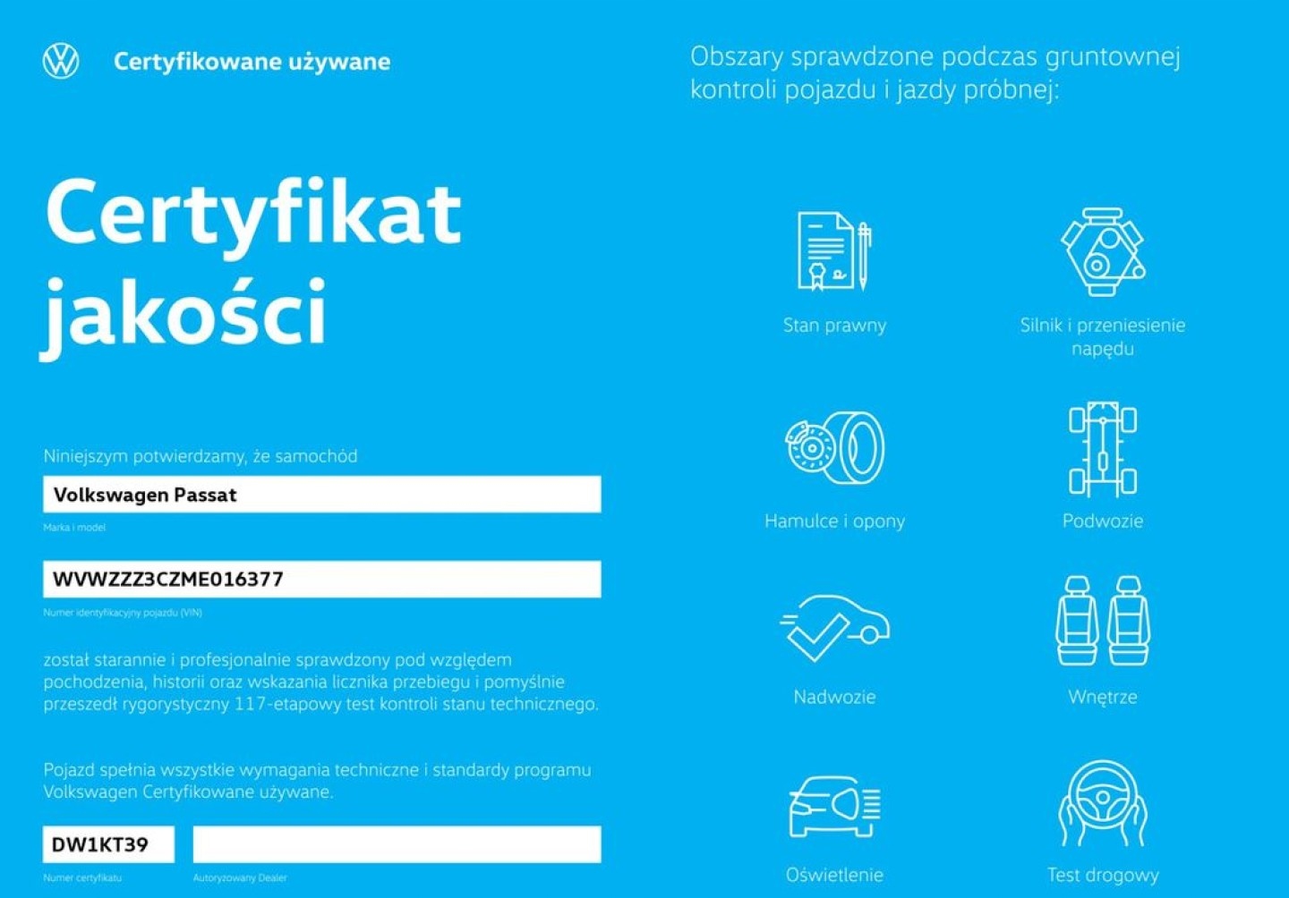 Мета програми - продавати перевірені вживані автомобілі - їх технічний стан, курс та історія були детально перевірилися за допомогою суворого контрольного тесту на ступінь 117. Думка цього тесту підтверджується сертифікатом якості бренду.
