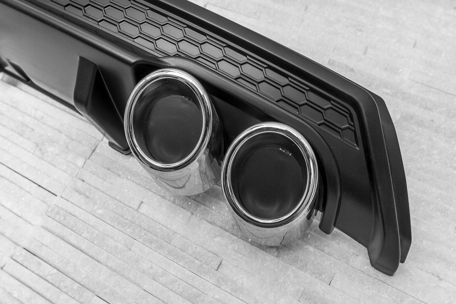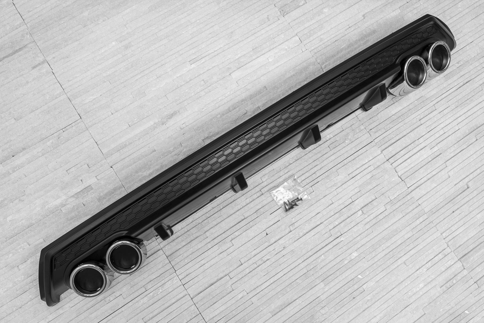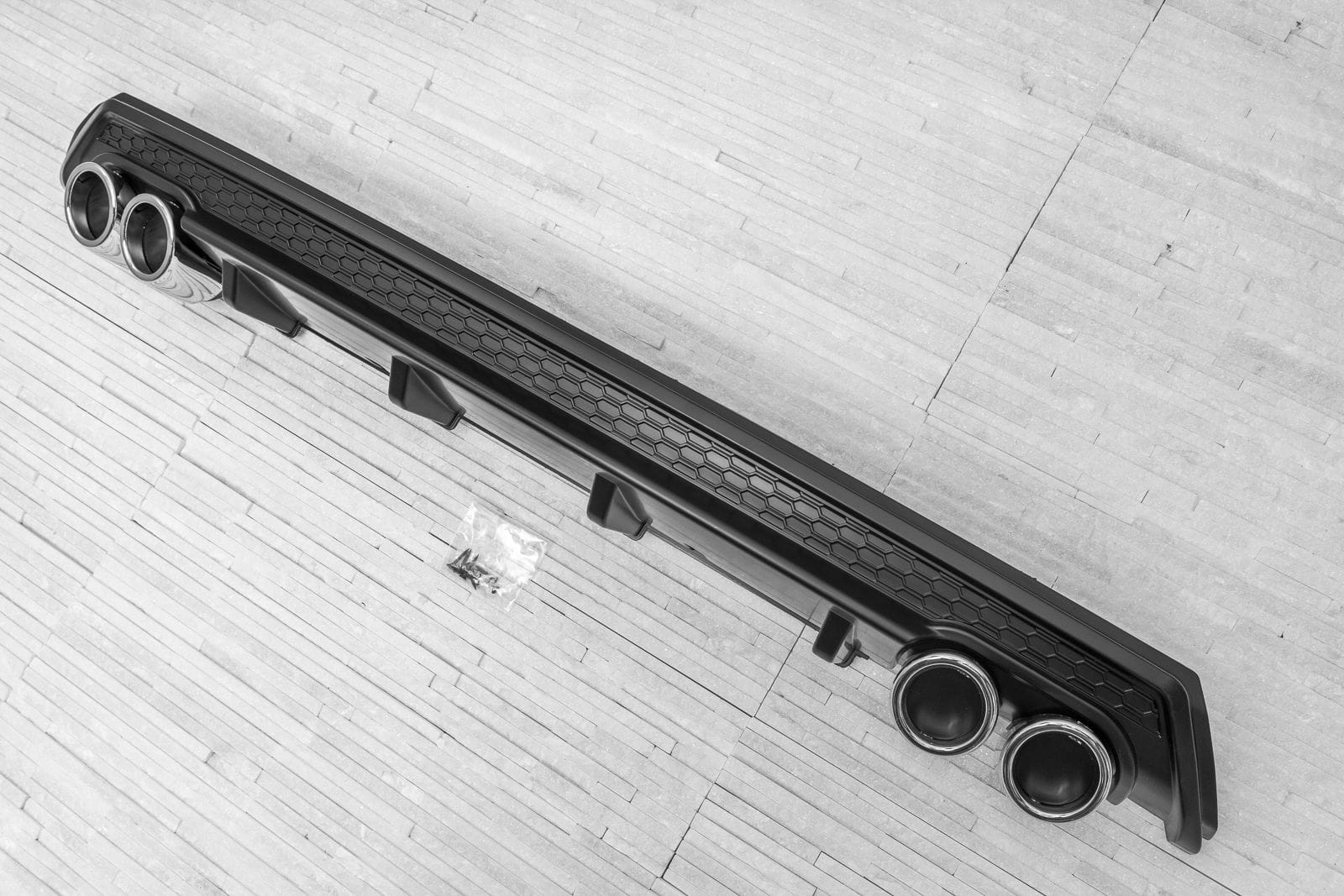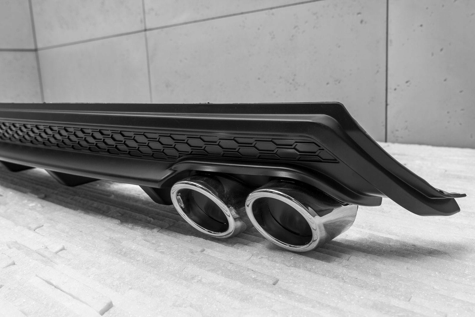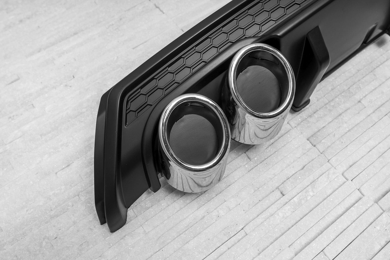 Дифузор був розроблений, щоб ідеально поєднуватися з іншими елементами обробки, доповнюючи динамічний і спортивний характер вашого автомобіля. Окрім візуальних переваг, дифузор покращує аеродинаміку автомобіля та зменшує шум повітря, що протікає під автомобілем.