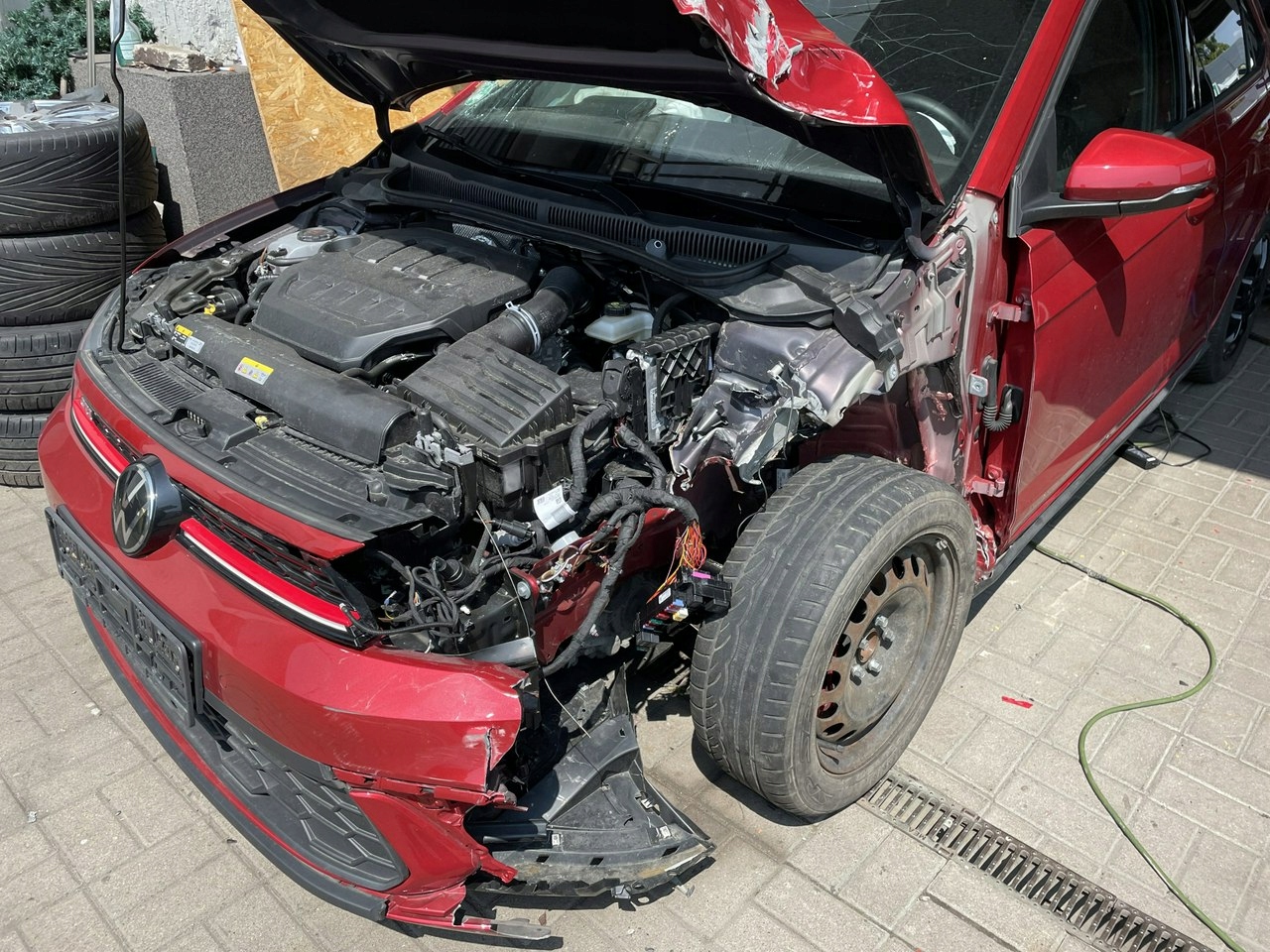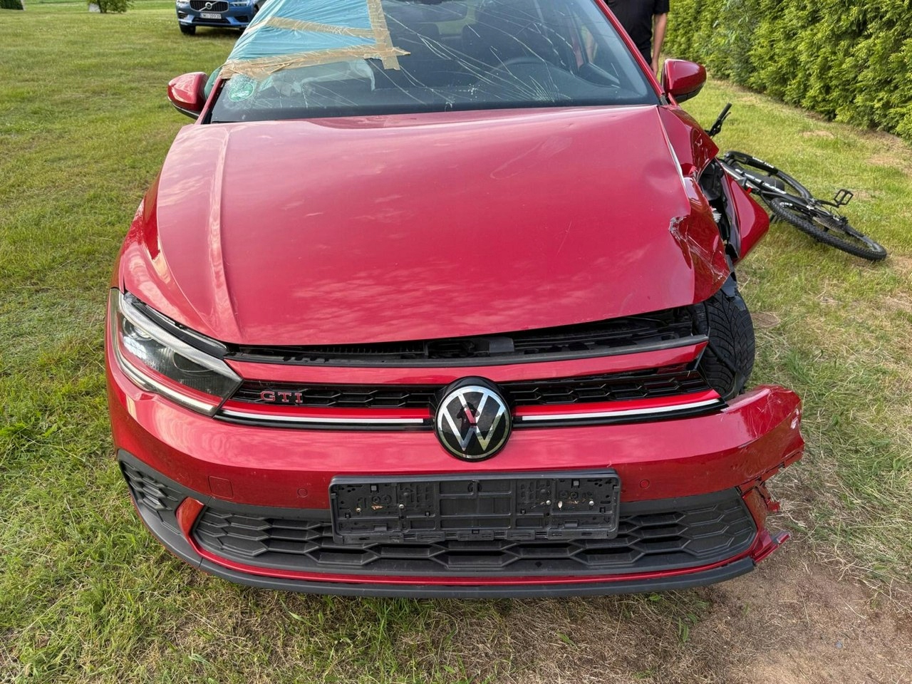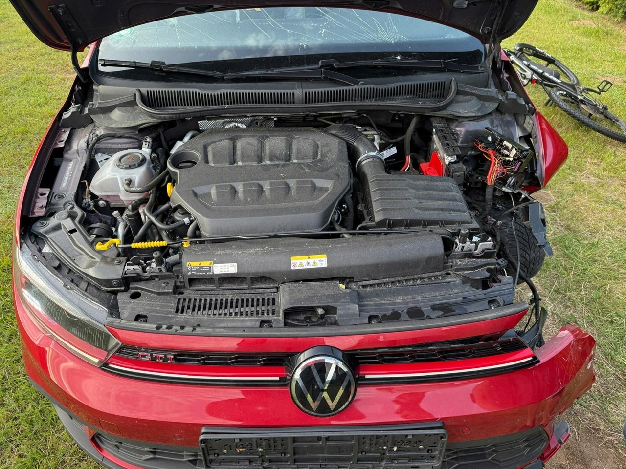 VW Polo GTI 2.0TSI - 207 HP Rich комплектація 2024р., пошкоджена як на фото, пошкоджена передня частина зліва - радіатори Цілі, пошкоджені передні праві двері. Машина димить і їздить по площі.
