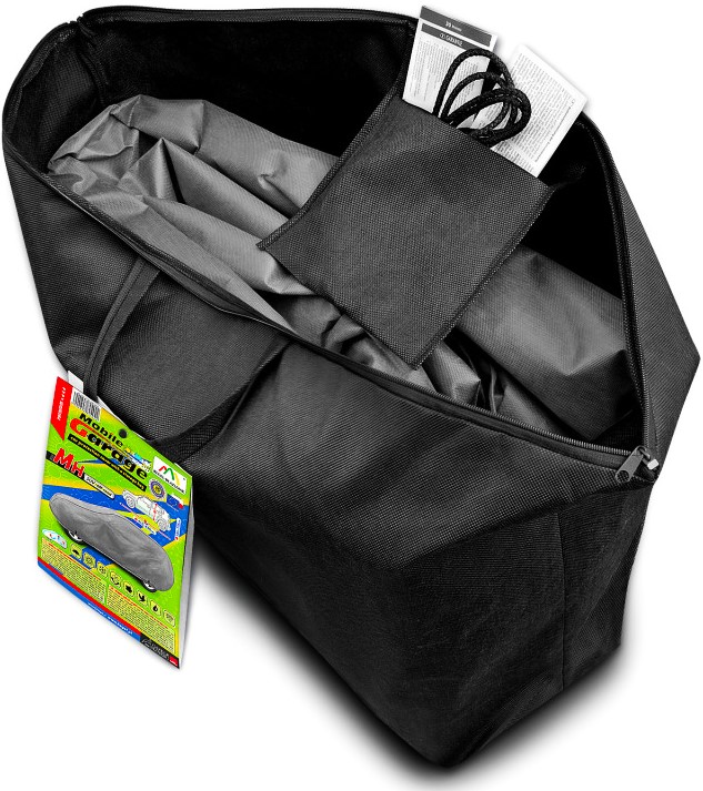 - Чохол MOBILE Garage - це достатній захист автомобіля цілий рік. У зимовий період запобігає накопиченню снігу, інею та льоду; восени захищає від дощу, вітру, листя та соку дерев; влітку та навесні захищає від УФ-променів, пилу та пташиного посліду.