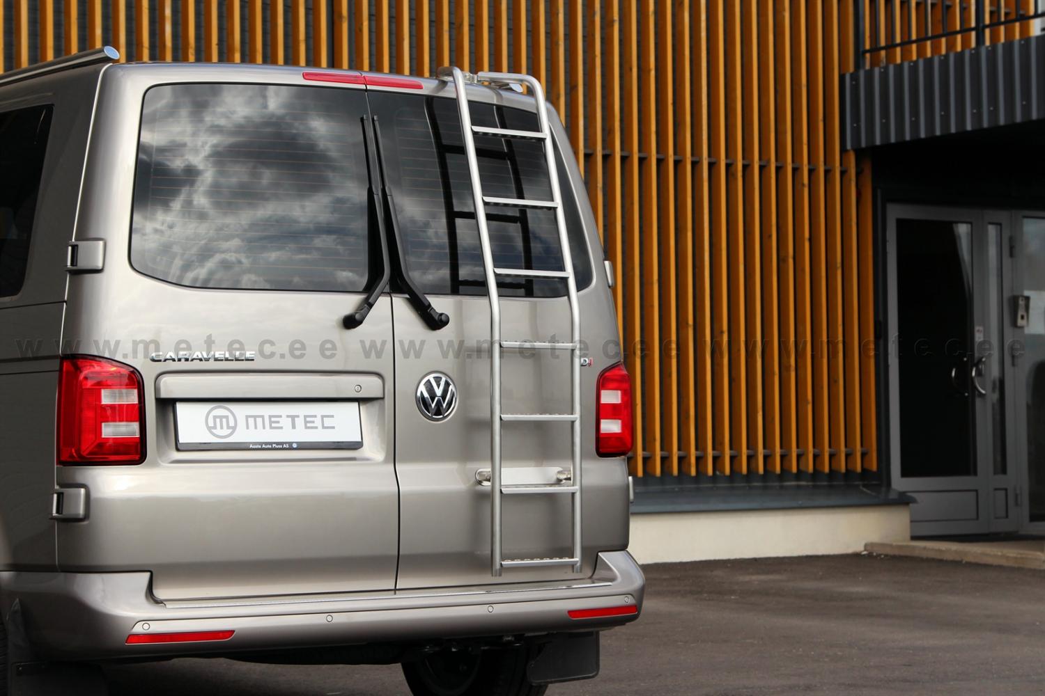 драбина для задніх дверей естонської компанії Metec. Виготовлений з полірованої нержавіючої сталі. Це чудове рішення для фургонів із встановленим багажником на даху. Це дозволяє простий та швидкий доступ до навантаження.
