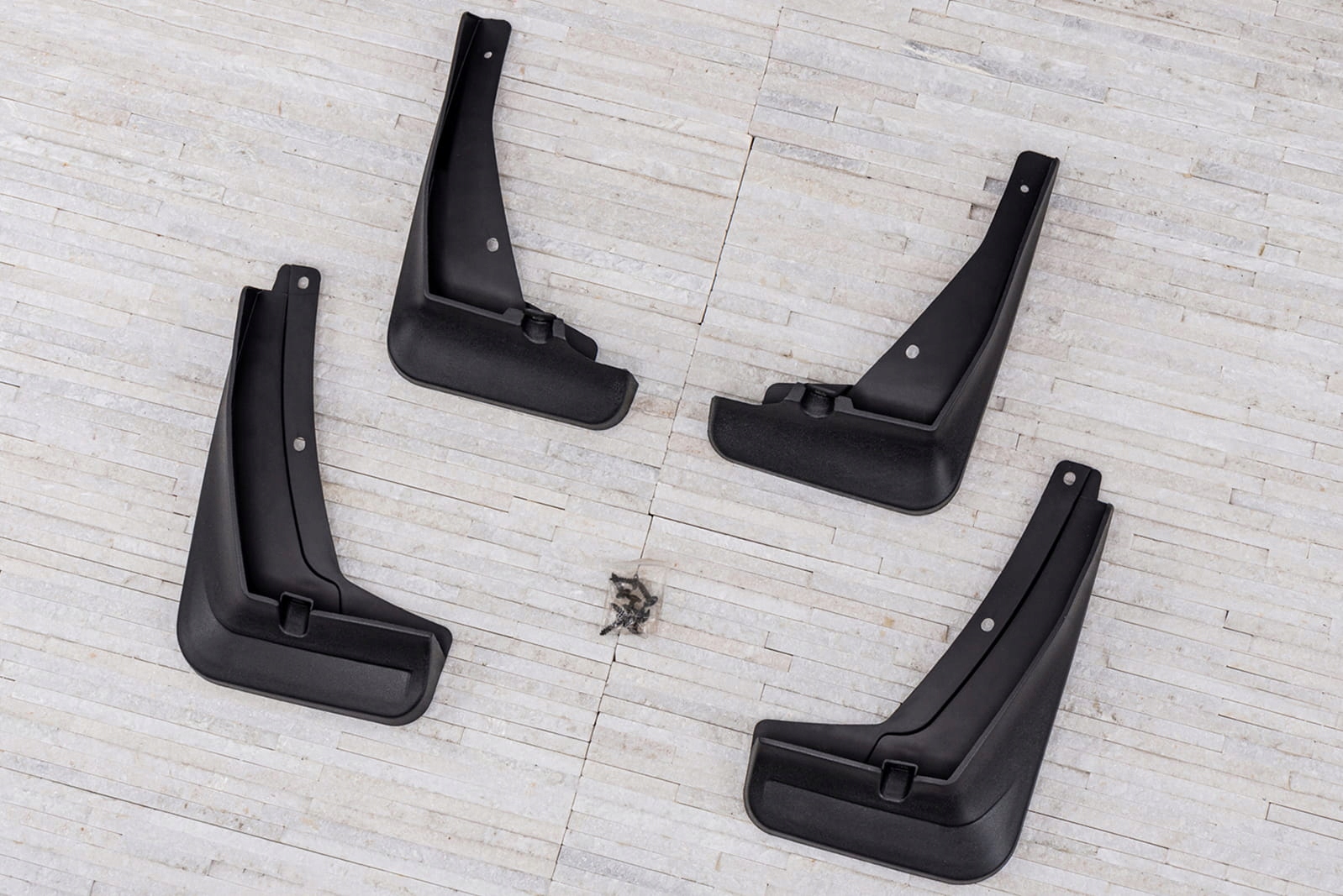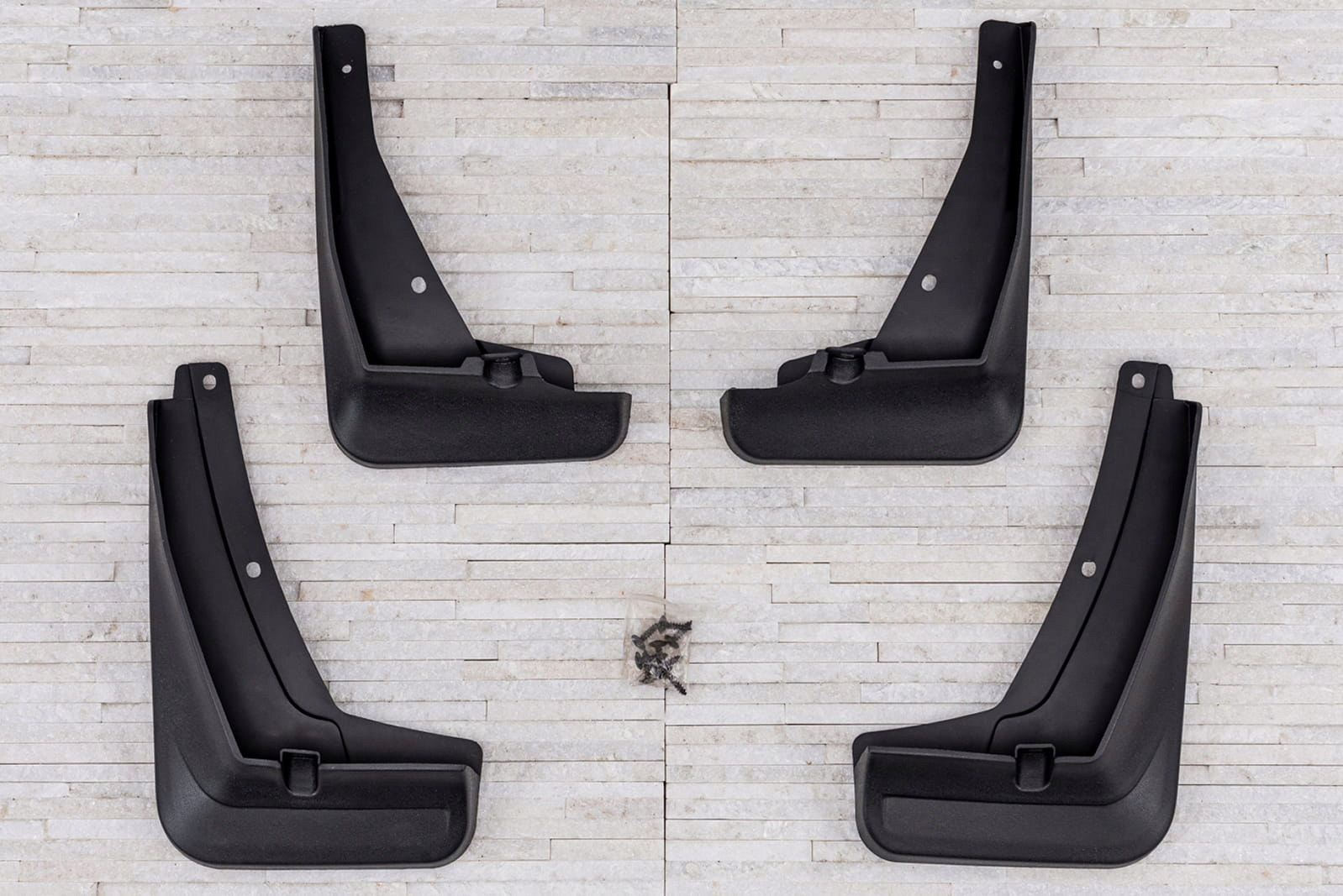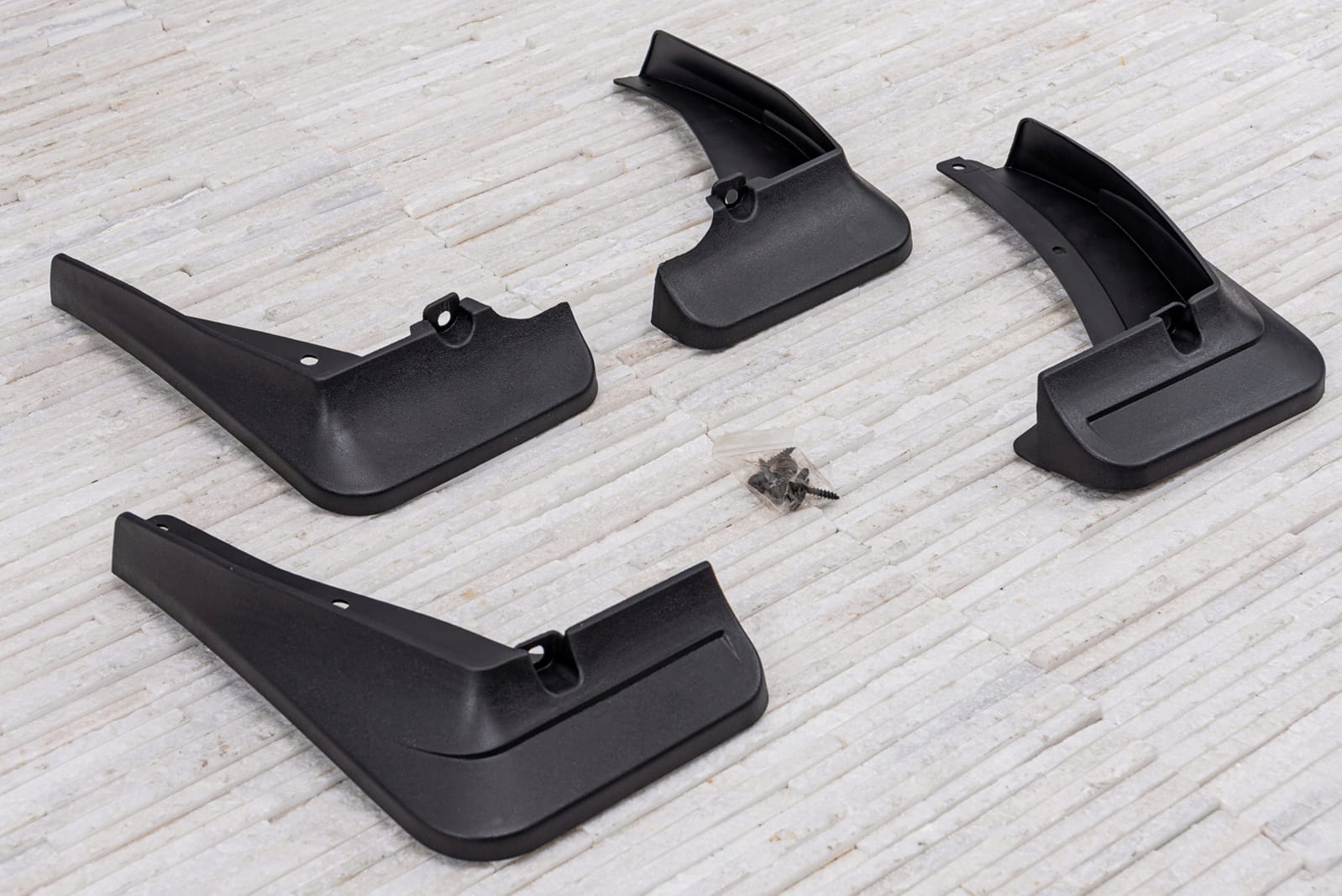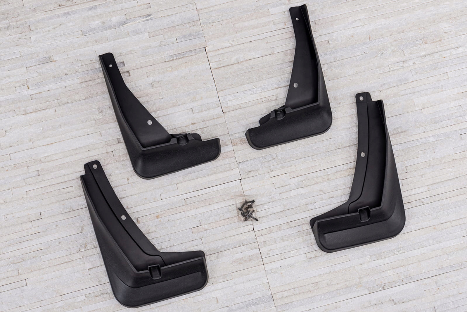 У набір входить набір із чотирьох бризговиків та елементів кріплення. Виріб встановлено на заводські місця, без додаткових доробок. Ми рекомендуємо установку в професійній майстерні.