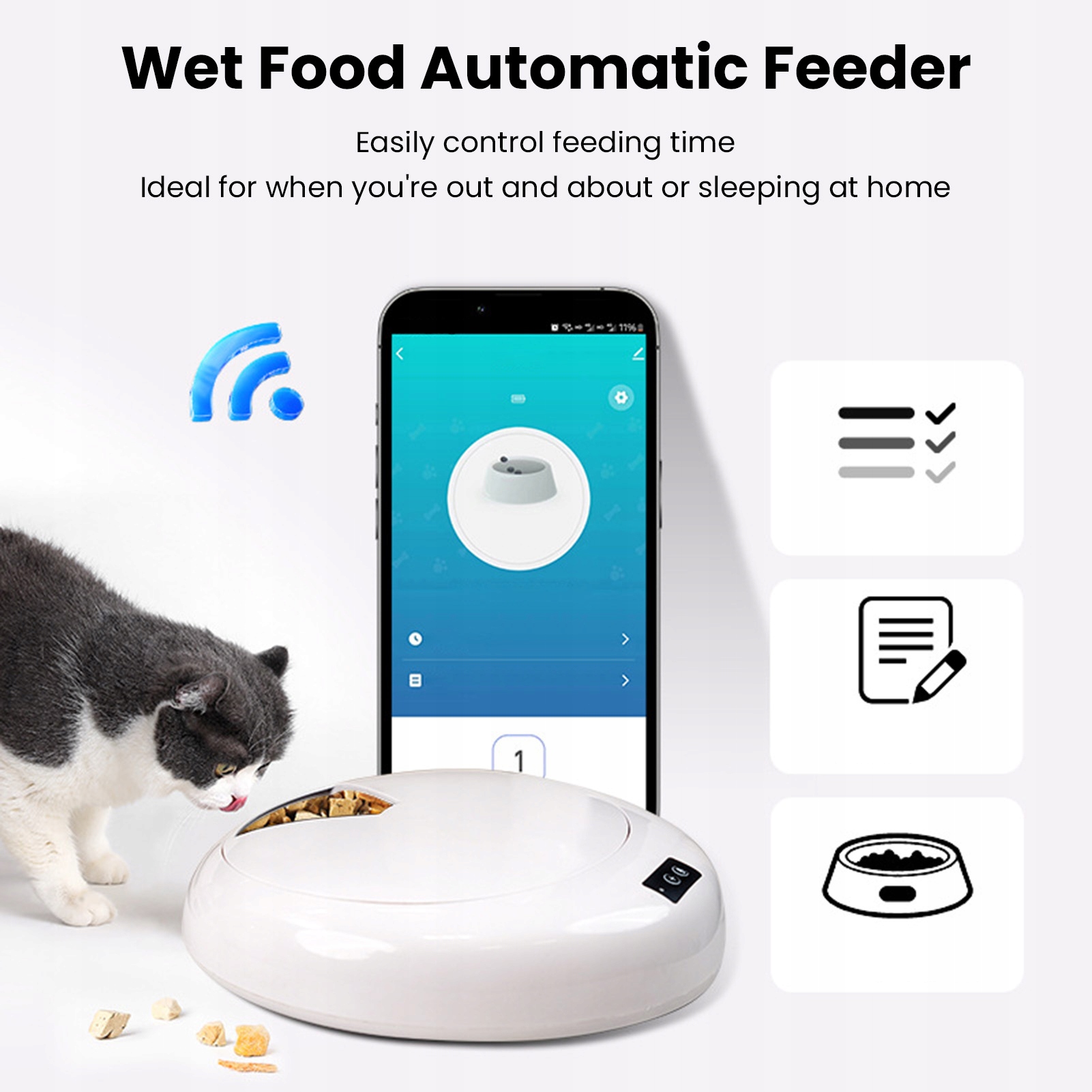 3. Сумісний з мокрою їжею: Цей автоматичний годівниця призначена для розміщення мокрої їжі, що робить її ідеальною для домашніх тварин з особливими потребами або дієтичними уподобаннями, гарантуючи, що вони отримують необхідне харчування.