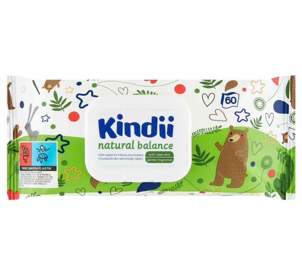 Вологі серветки KINDII NATURAL BALANCE 60 ШТ