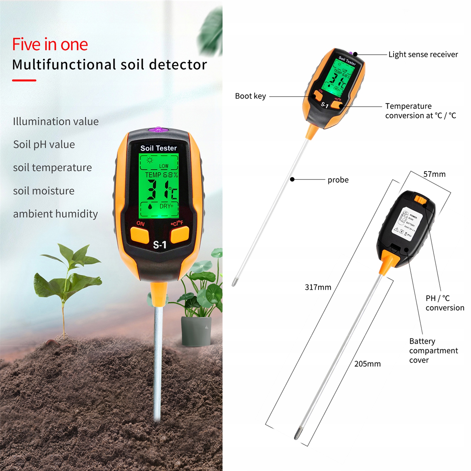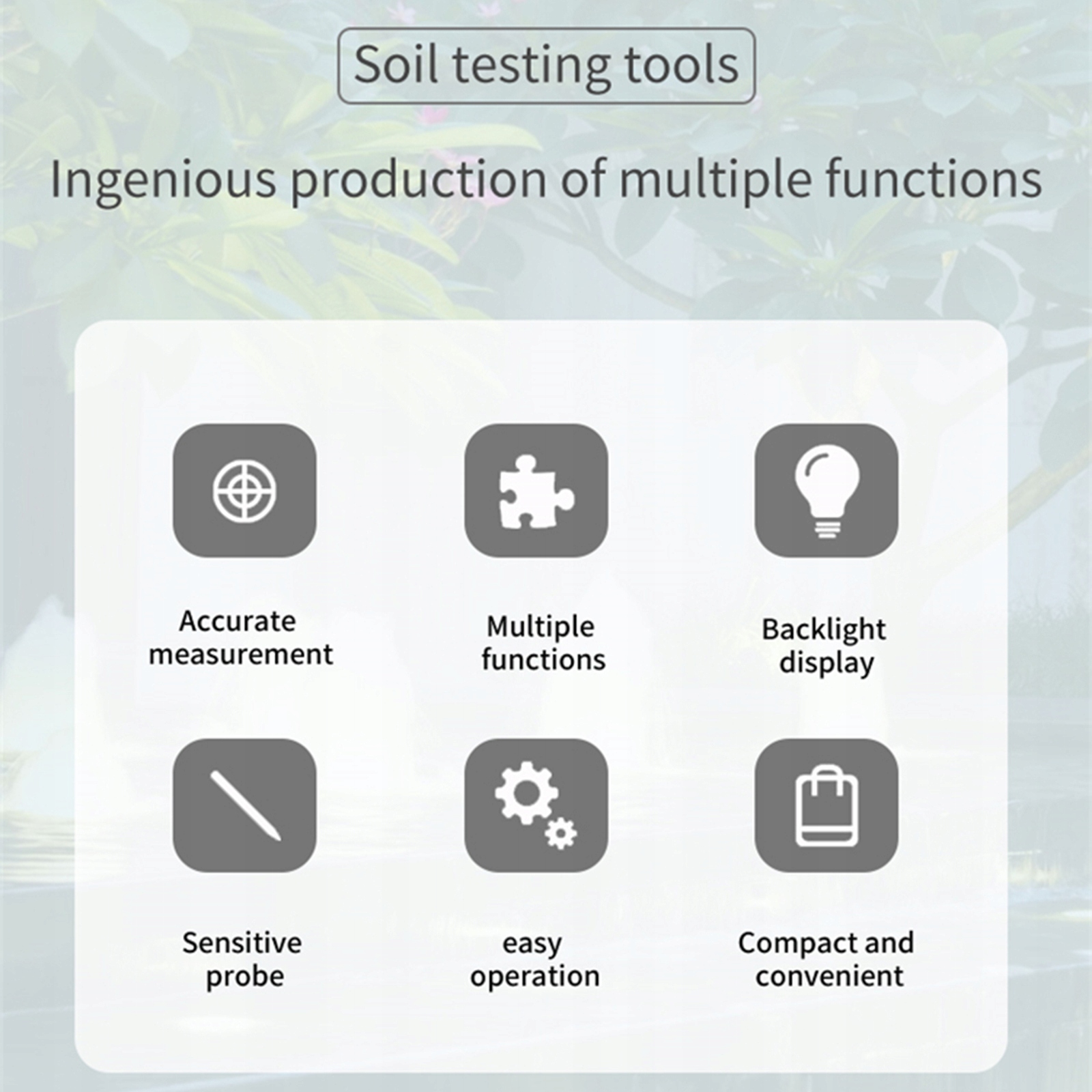 1. 【Функція 4 в 1】 Наш тестер ґрунту може швидко виміряти вологість ґрунту, pH, температуру та сонячне світло, щоб допомогти вам краще доглядати за своїми квітами та рослинами.
