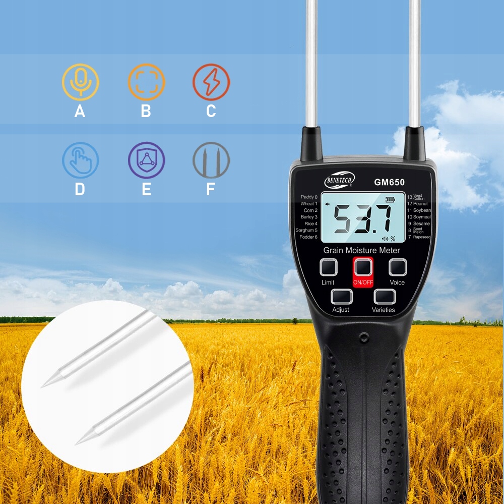 Вологомір GM650 є універсальним і зручний прилад, призначений для вимірювання вологості 14 груп зернових культур і продуктів, таких як:
