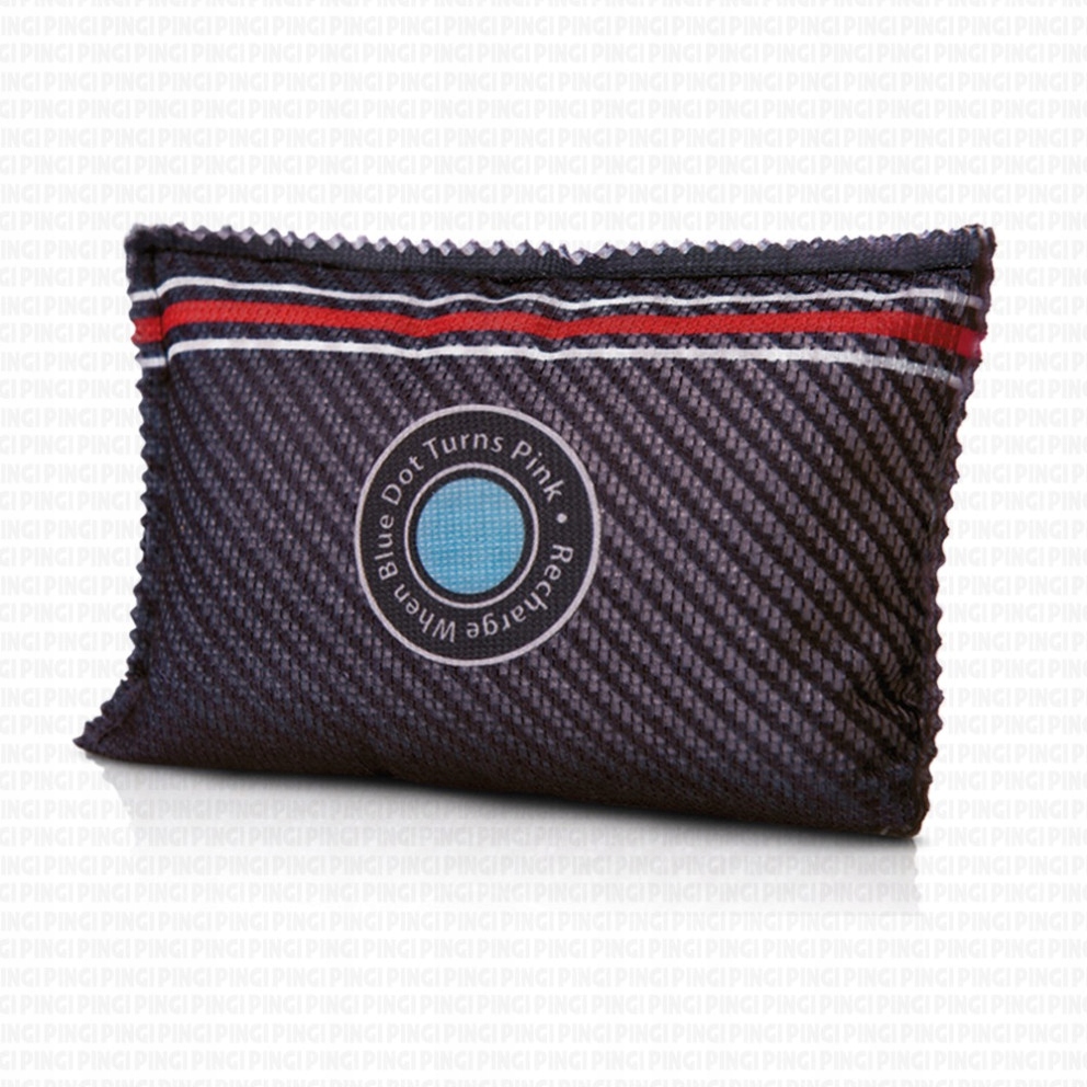 Виріб має конструкцію з вуглецевого волокна, яка чудово виглядатиме в будь-якому сучасному салоні автомобіля. Доступний у двох розмірах, автомобільний осушувач повітря PINGI легко поміщається на передній панелі, у консолі або в бардачку.