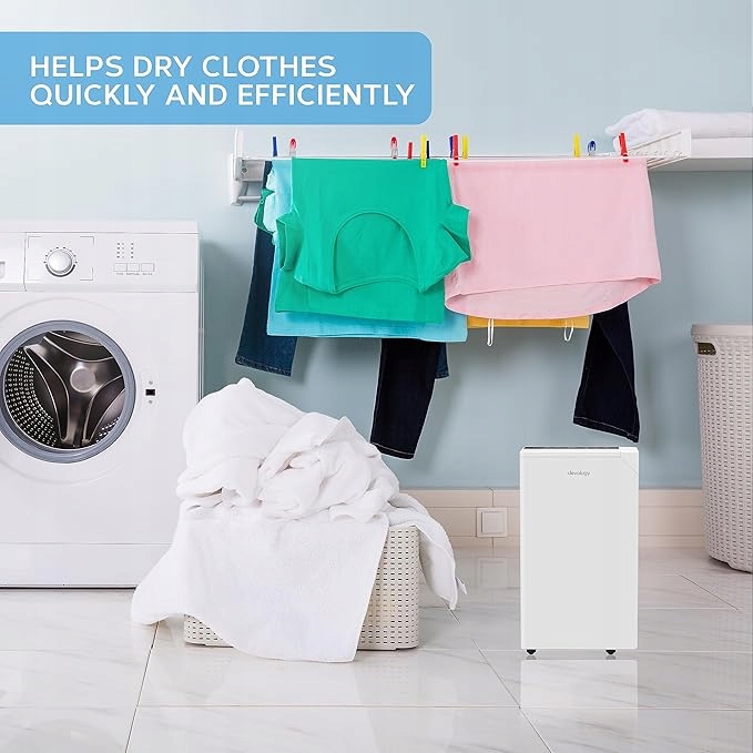 - Висока продуктивність осушення: осушувач Devology із вражаючою продуктивністю осушення 20 літрів на день ефективно видаляє надлишкову вологу з приміщень площею до 30 м2. Попрощайтеся з вологістю, конденсатом і затхлим запахом для більш здорового та комфортного середовища для життя чи роботи. Ця машина також має великий 3,5-літровий резервуар для води для більш тривалого періоду сушіння без частого спорожнення.