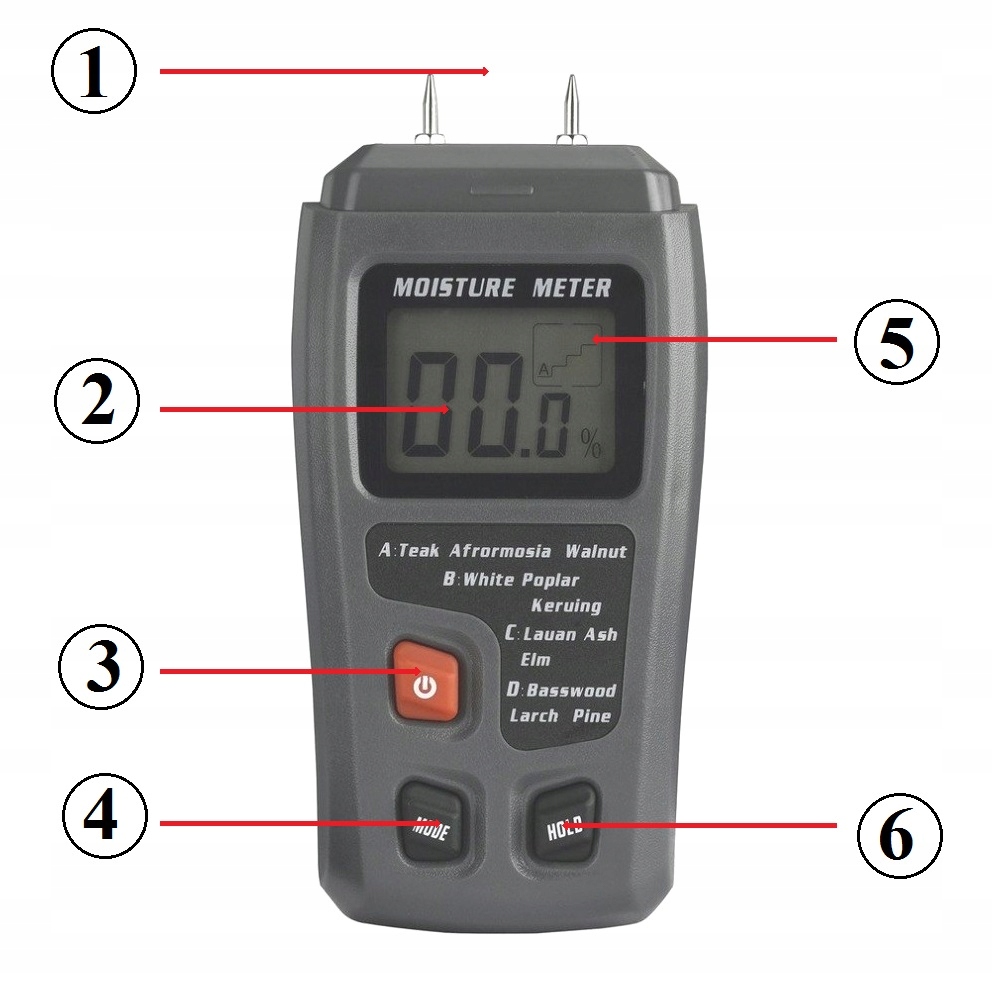 Глюкометр дозволяє вимірювати вологість багато порід деревини.
