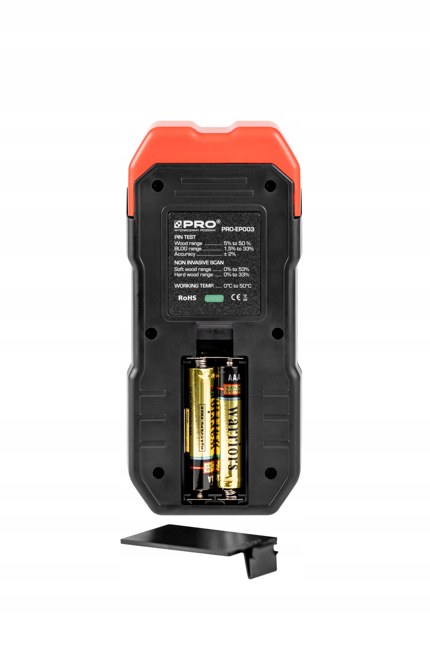 - Робота з штифтовим тестером : дерево: 5%-50%, будівельні матеріали: 1,5%-33%, діапазон помилок: +/-2%