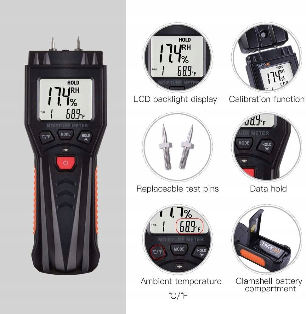 1 x TackLife MWM03 LCD цифровий вологомір детектор деревини.