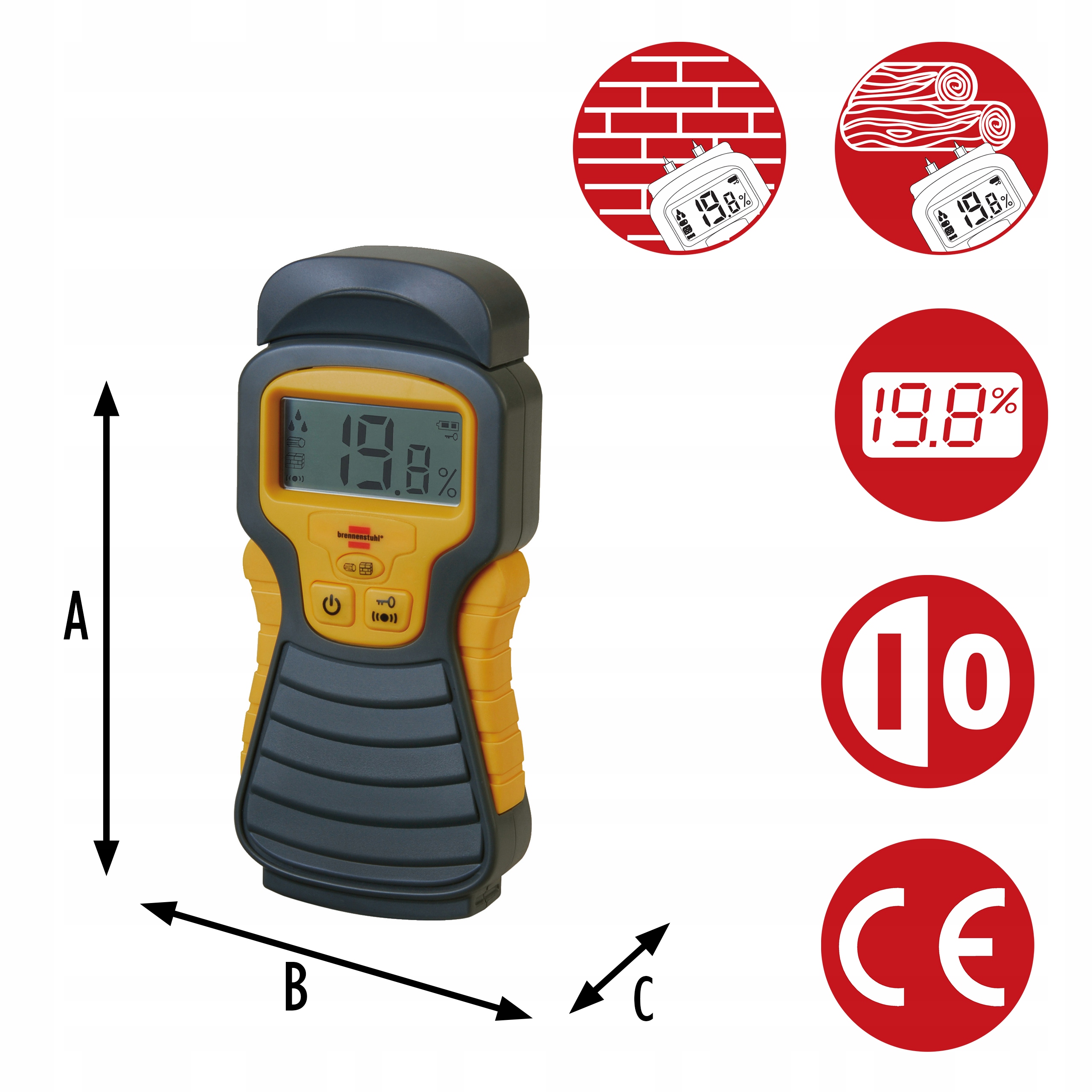 ✳️ Діапазон вимірювань від 5 до 50% для деревини та від 1,5 до 33% для будівельних матеріалів.