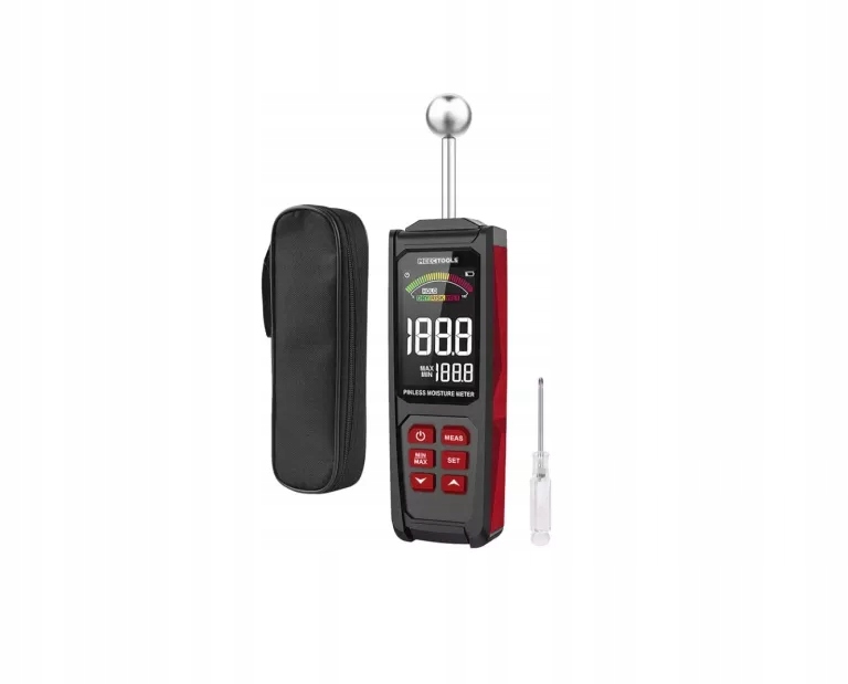 Вологомір із кульковим датчиком із серії Meec Tools ідеально підходить, коли ви хочете виміряти вологість бетону, цегли, шпалер та інших будівельних матеріалів. Не пошкоджує поверхню матеріалу, оскільки вимірювання відбувається без палиці. Завдяки РК-дисплею, датчику кульки та функції автоматичного калібрування вологомір ідеально підходить як для професіоналів, так і для любителів DIY. Висока точність