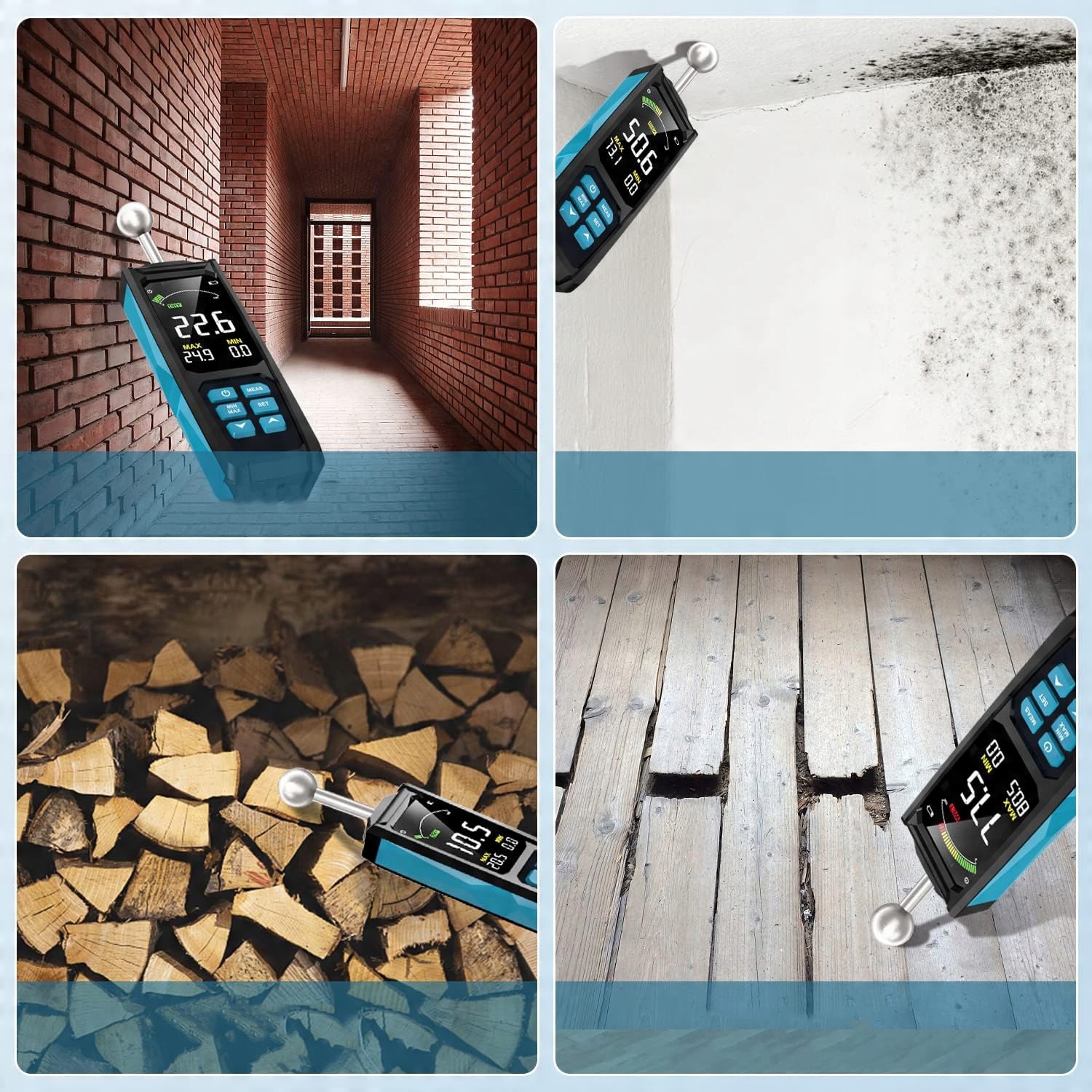 ☑️ Підходить для перевірки вологість деревини та будівельних матеріалів, таких як стінові плити, шифер, плитка, картон, штукатурка, бетон і будівельний розчин, а також для ремонту витоків води, перевірки вологості стін спальні, плитки для підлоги чи вагончиків тощо.