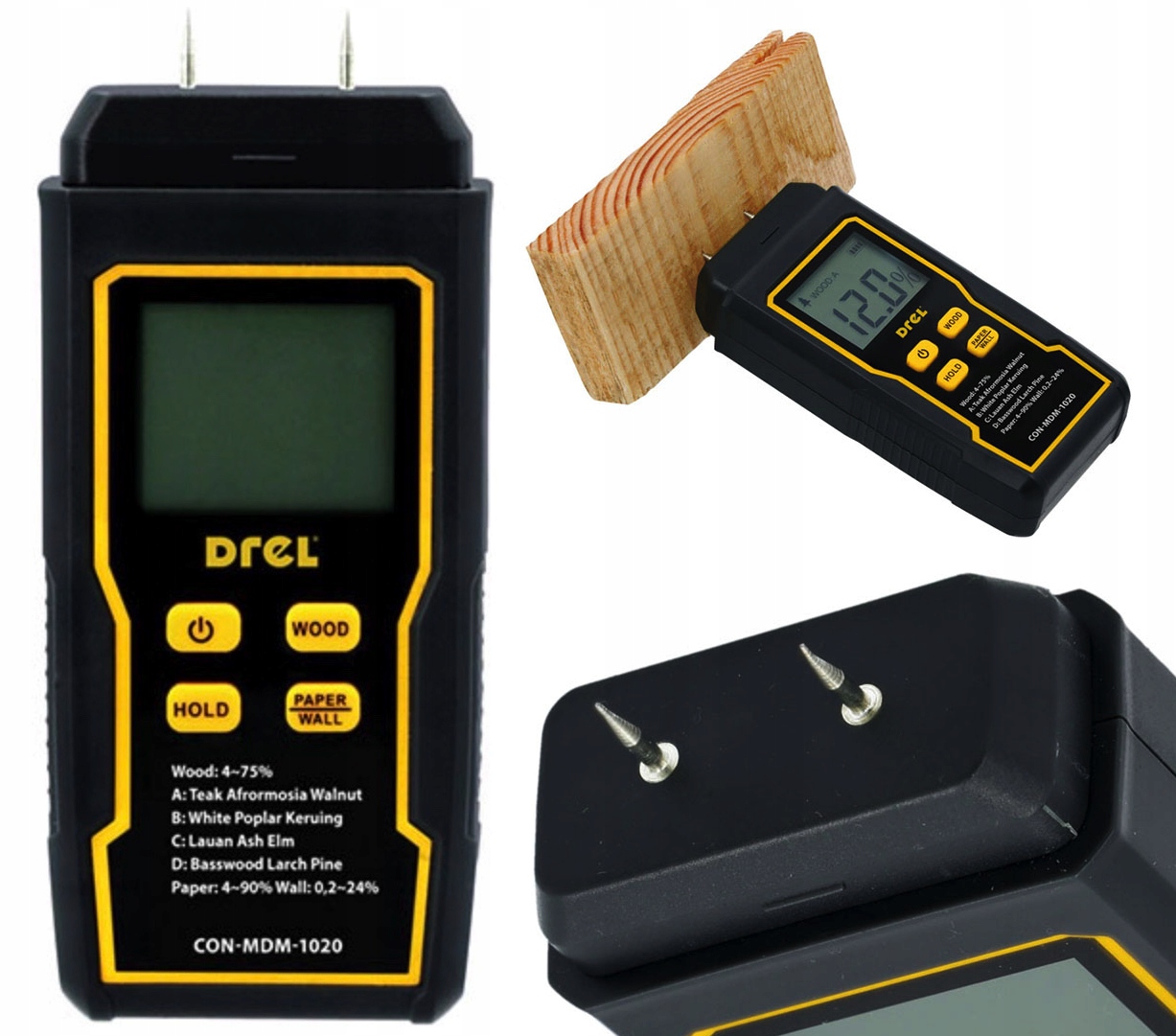 - Великий РК-дисплей значення вологості деревини з підсвічування. Точність: 0,5%