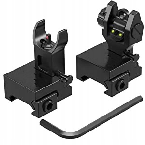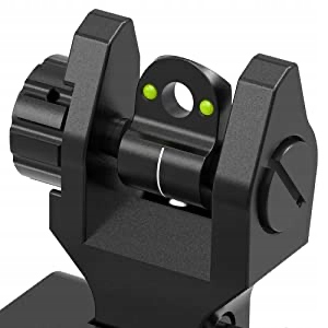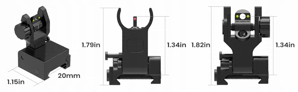 волоконно -оптичні приціли - це значне вдосконалення вашої гвинтівки, волоконно -оптичного прицілу червоним кольором, зелений дозволяє швидше націлитись, працює поодинці або як свідок з колімічними прицілами. Виготовлений із загартованого авіаційного алюмінію та завершено методом анодування твердого покриття MIL-специфіка. Просто натисніть бічну кнопку і надійно складіть приціли, поки вам не знадобиться, низький профіль 0,44 дюйма після складання.