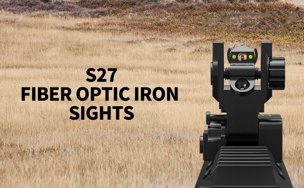 Більш видимість - легка видимість волоконно -оптичних прицілів S27 з червоною та зеленою крапкою; Швидка реалізація завдяки дизайну Flip-Up, просто натисніть кнопку і складені, їх слід підняти вручну (без стрибкового вікна, що підтримує пружину), що дозволяє швидко реалізувати. 4 4