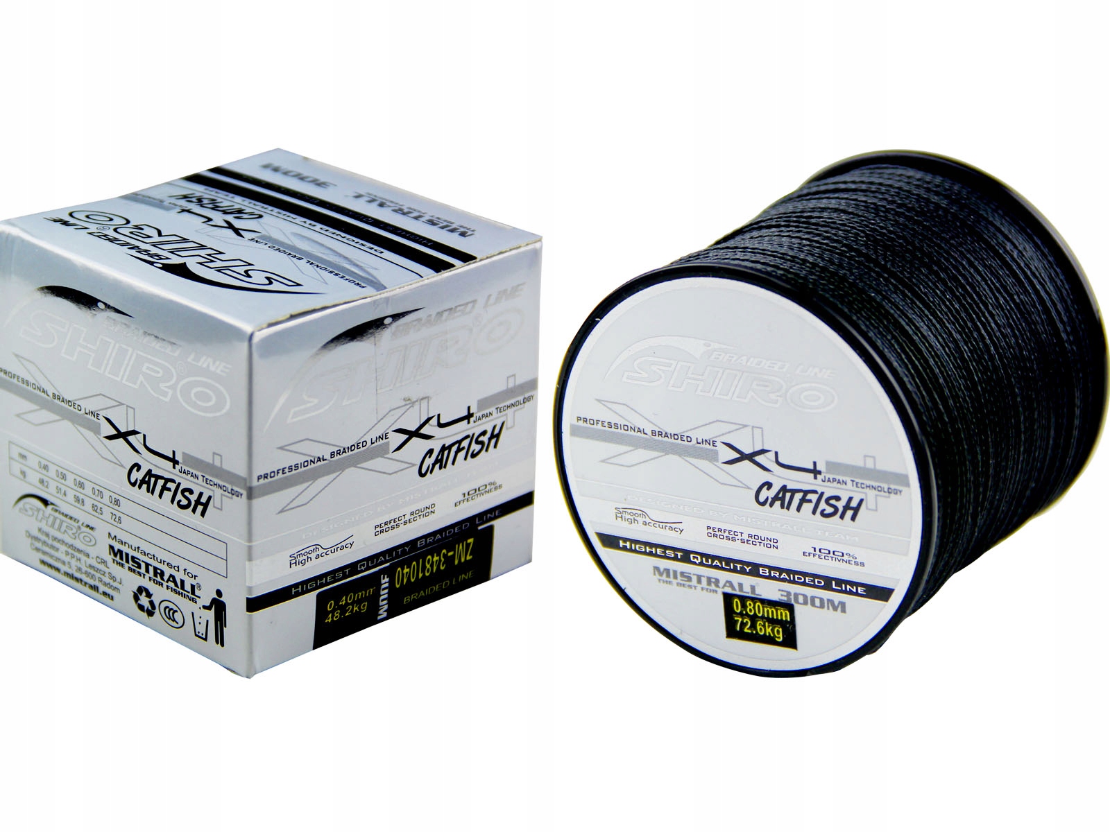 Чудова плетена волосінь для сома Mistrall Shiro X4 Catfish Black # чорний # 0,80 мм / 72,6 кг / 300 м / Новинка !!!