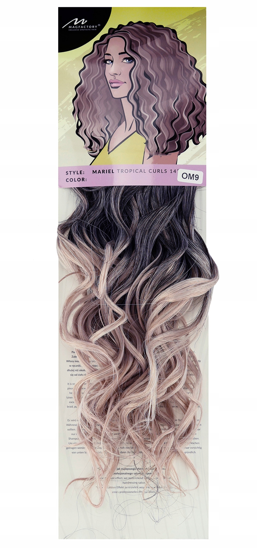 Маріель Тропічні локоти - це синтетичне волосся, що переплетені у волосся. Волосся м’яке, гнучке і має злегка конічні кінці.