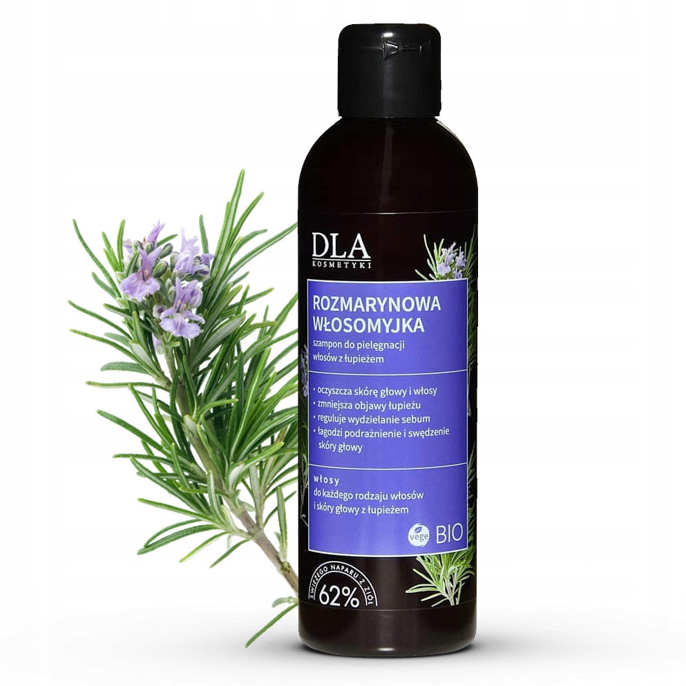 - розмарин - антибактеріальний, протигрибковий. Він регулює секрецію сала, що зменшує жирне волосся. Стимулює належне росту волосся. Сполуки, що містяться в ньому, покращують кровообіг, що призводить до набагато швидшого росту волосся. Після лікування розмарином волосся здоровіше, плавніше і блискуче.