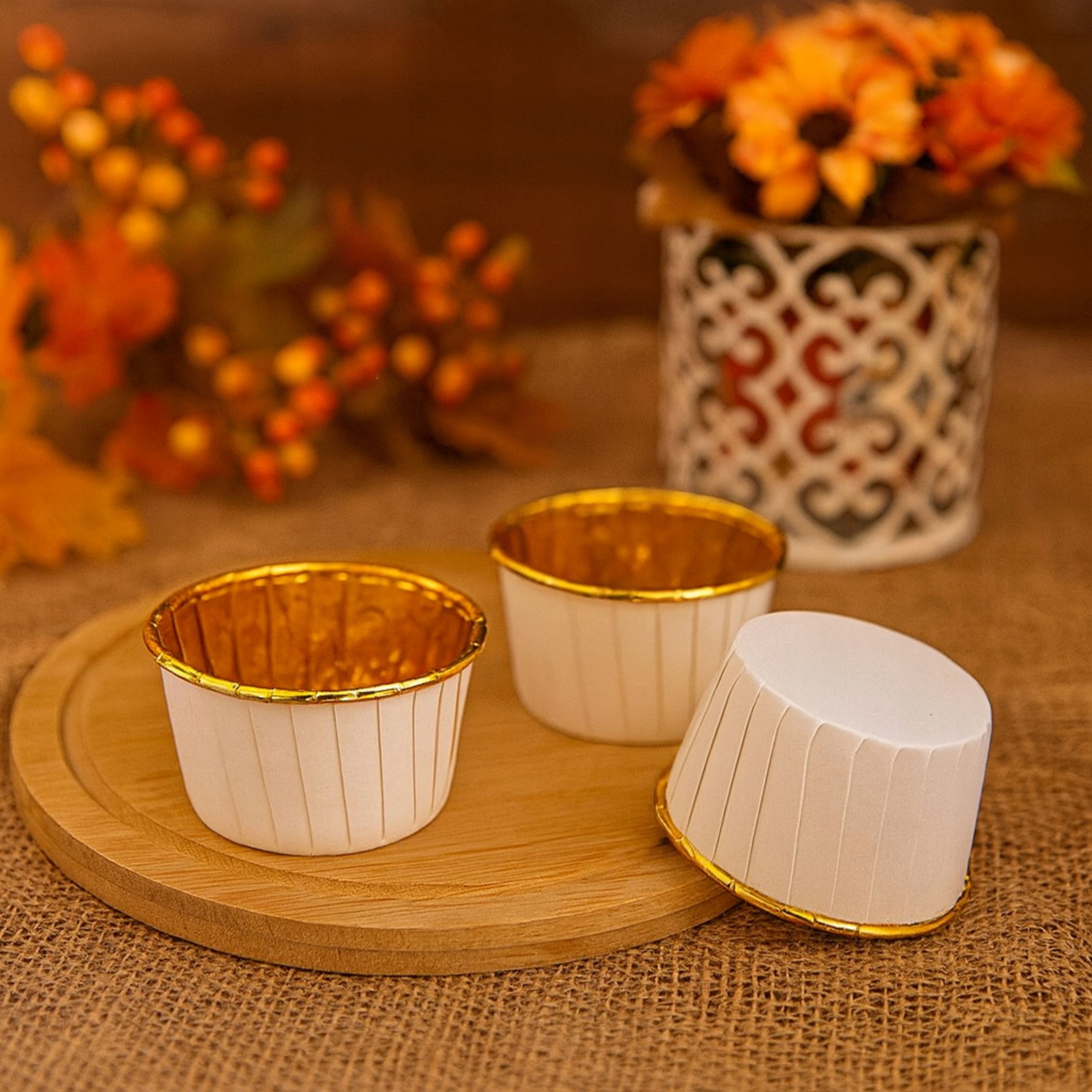 Ці елегантні чашки для мафінів поєднують мінімалістичний білий колір зовні з привабливим золотистим інтер’єром, завдяки чому ваші мафіни, кекси та тарталетки виглядають ще апетитніше та стильніше.