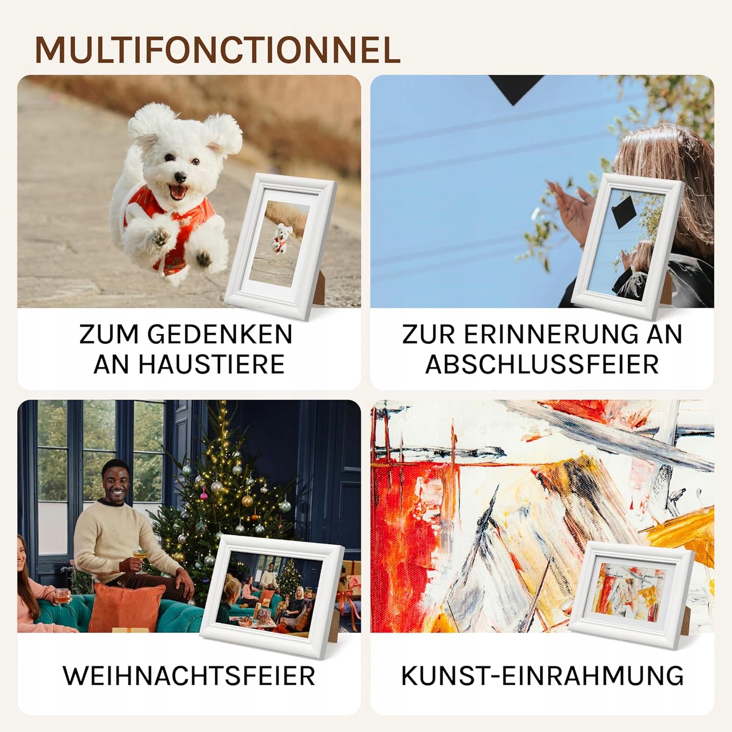 - 10 розмірів у 7 кольорах: Цей фотокадр у різних розмірах підходить для 10 x 15 Ви також можете використовувати нашу білу партуту, щоб отримати естетичний ефект і підкреслити красу фотографій. У нас є дерев’яні фото -рамки в семи кольорах на вибір, які можна інтегрувати з кожною кімнатою