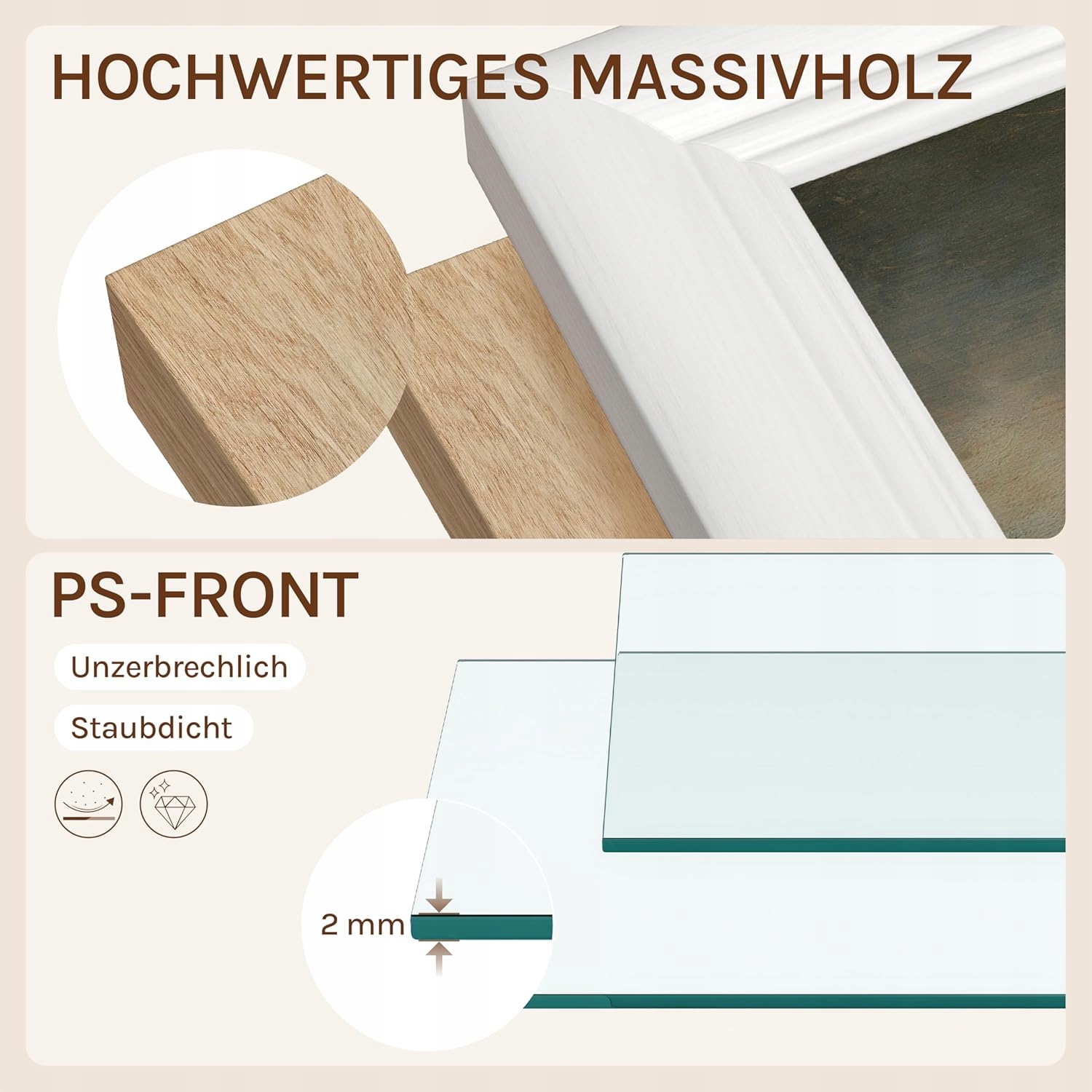 - Фото -рамка, багато додатків: на задній стінці рамки є висячі гачки, які полегшують повісити вертикально або горизонтально. Фото -рамка також оснащена подвійною ногою, яка дозволяє стабільно горизонтальна або вертикальна установка. (Без бази підтримки розміром 30 х 40 см і більше). Різні методи застосування дозволяють вам задовольнити різні потреби