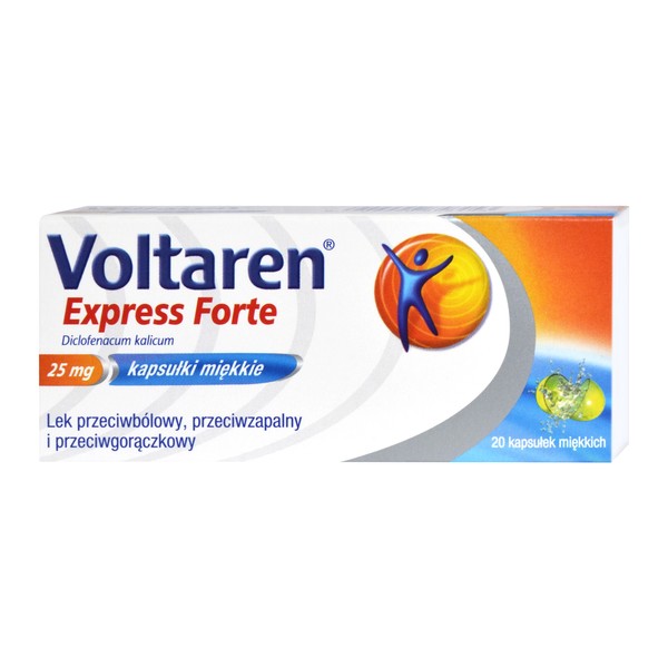 Вольтарен Експрес Форте м’які капсули є зручною альтернативою для пацієнтів і зручні у використанні. Діюча речовина, диклофенак калію, є тією ж речовиною, що міститься в таблетованих препаратах і доступна в дозі 25 мг. Терапевтичні показання також однакові. Однак препарат містить диклофенак, розчинений у безбарвному розчині, який діє швидко, забезпечуючи зручність прийому таблеток. Крім того, м’які капсули Вольтарен Експрес Форте при ковтанні швидко вивільняють активну речовину, яка швидко досягає джерела болю та запалення, приносячи полегшення.