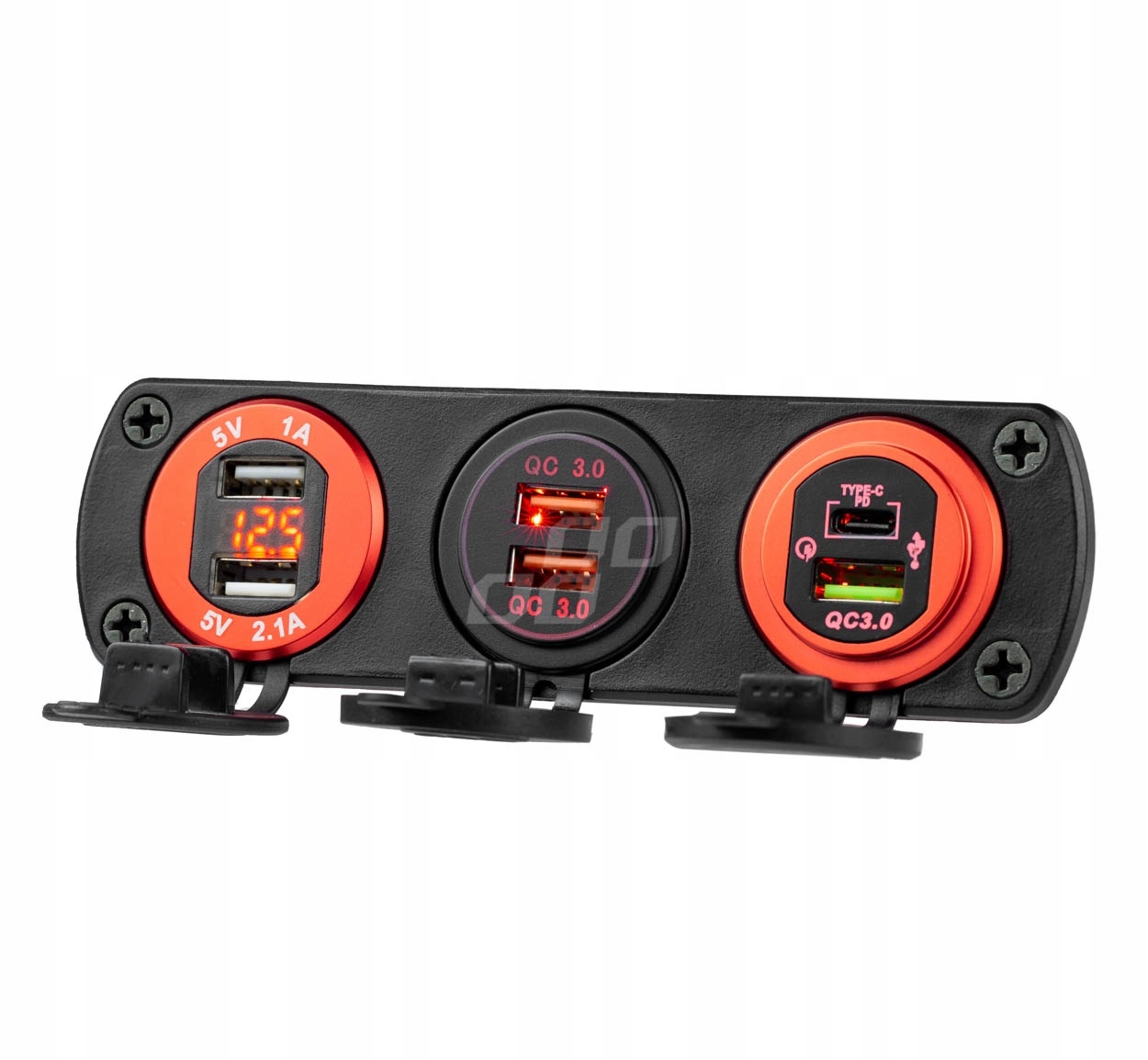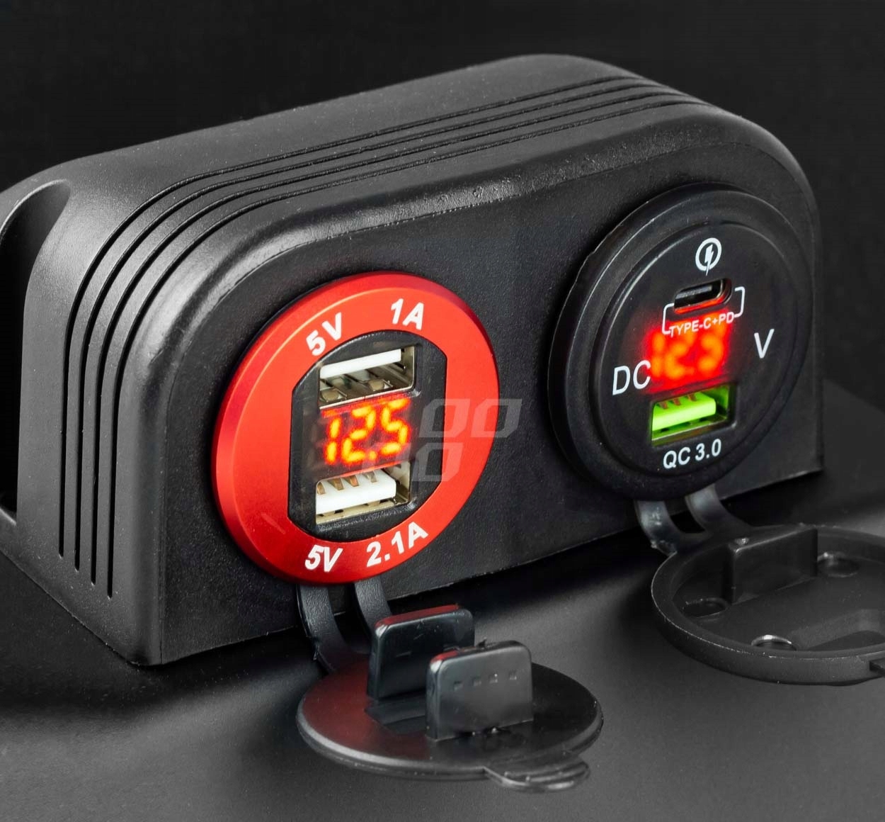 Водонепроникний зарядний пристрій з роз'ємами USB і тестером напруги 2xUSB 12/24V MOD-06