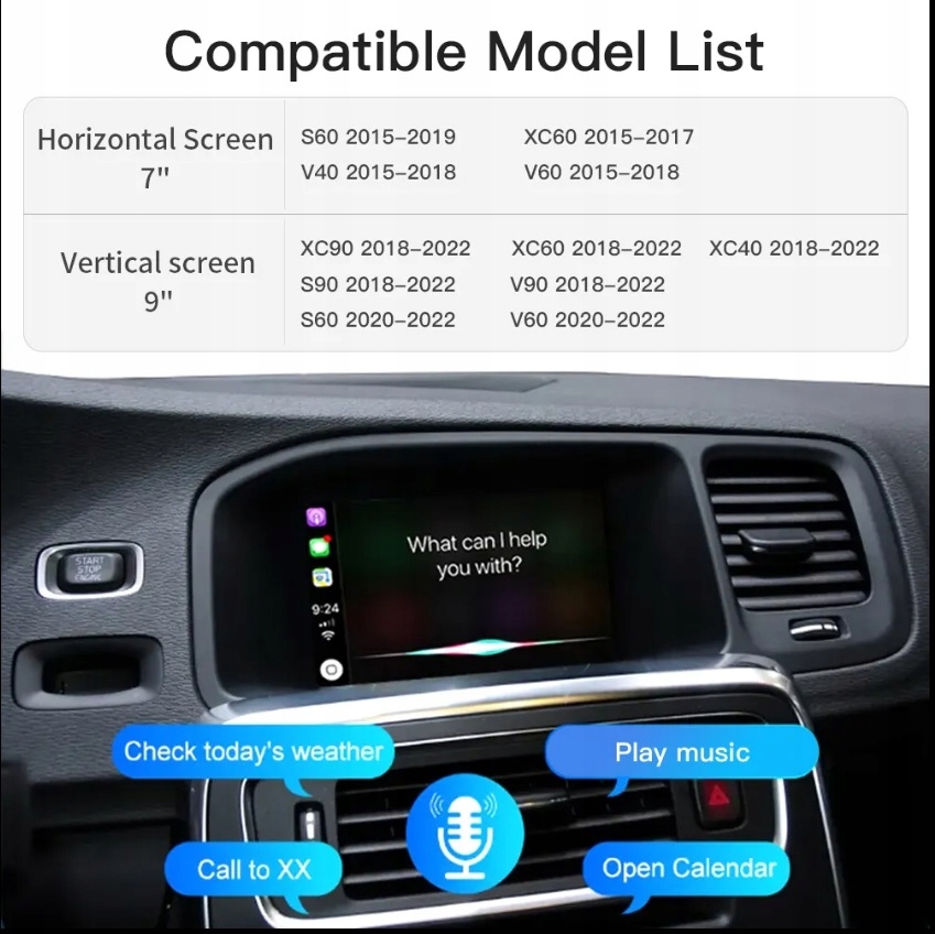 Volvo V40 V60 S60 XC60 & 7 дюймів Apple CarPlay Android Auto WiFi USB -модуль