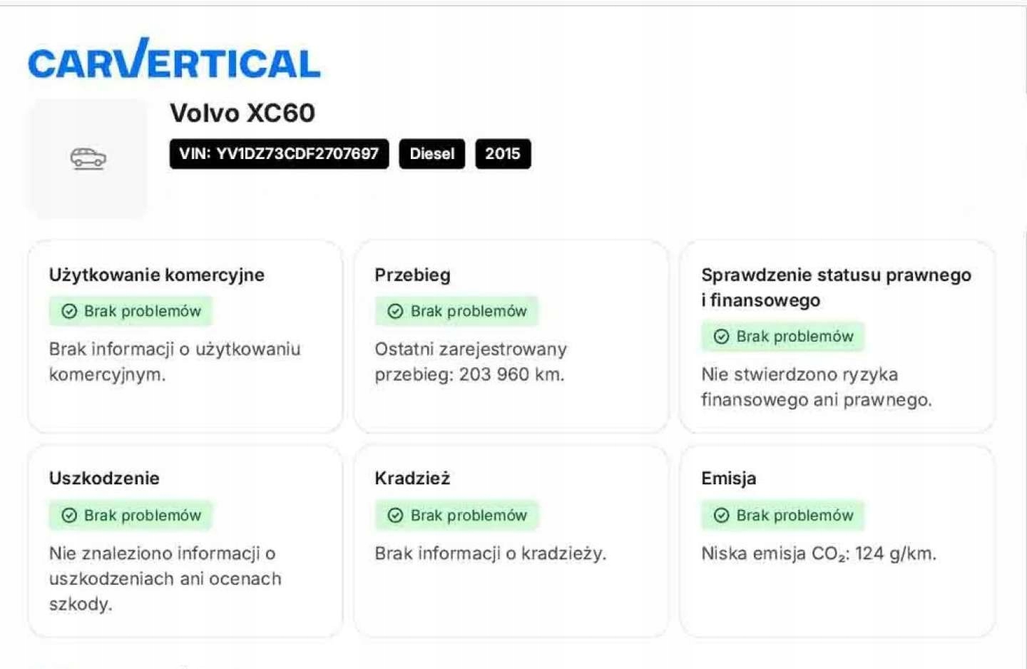 Я надаю VIN, щоб ви могли перевірити пробіг та безаварійність автомобіля: YV1DZ73CDF2707697