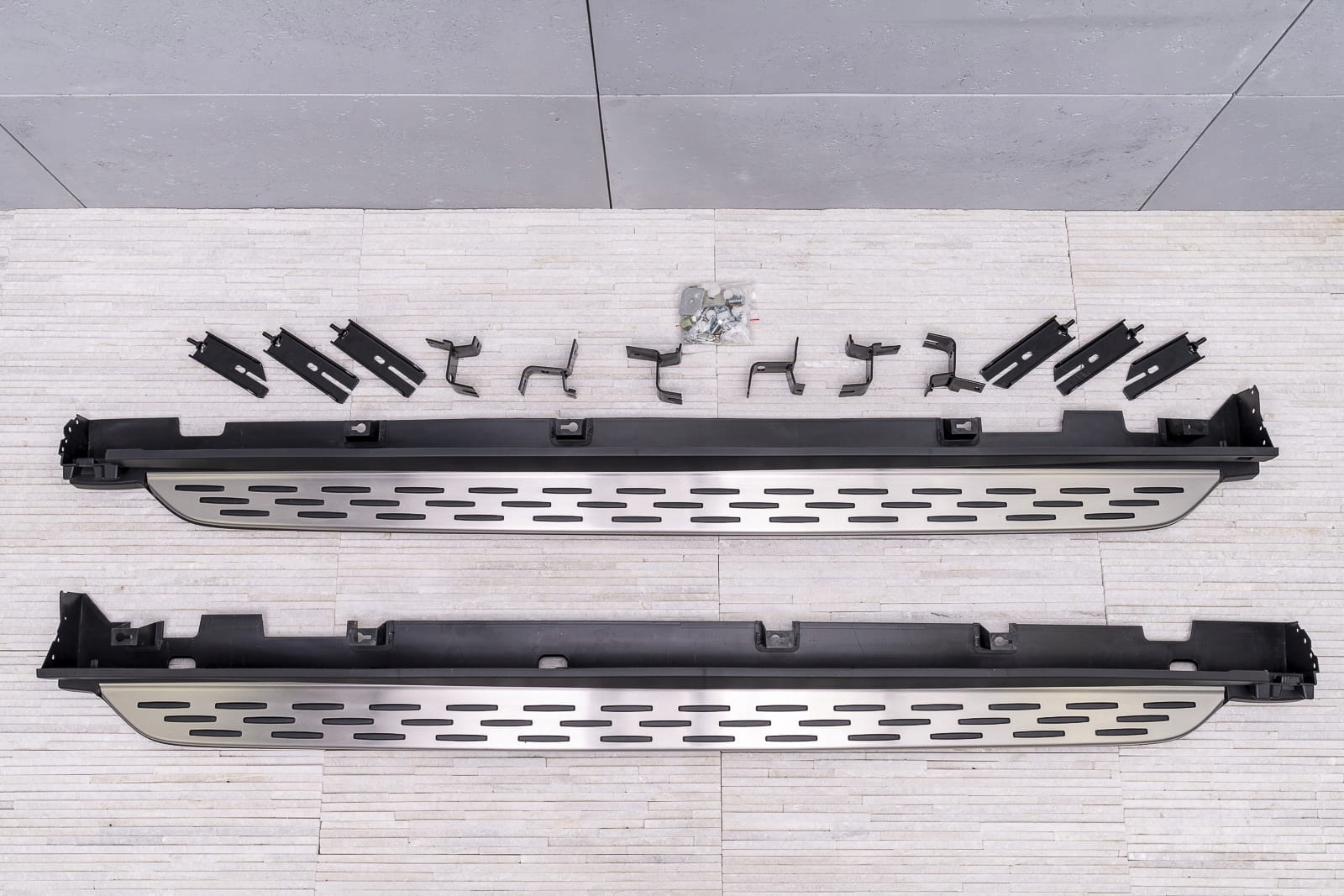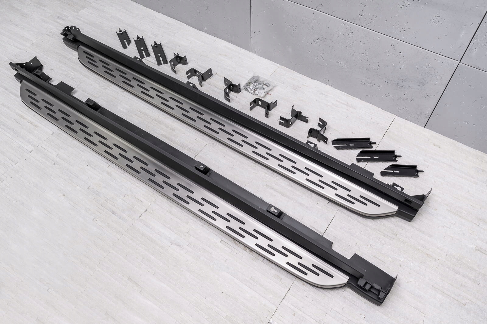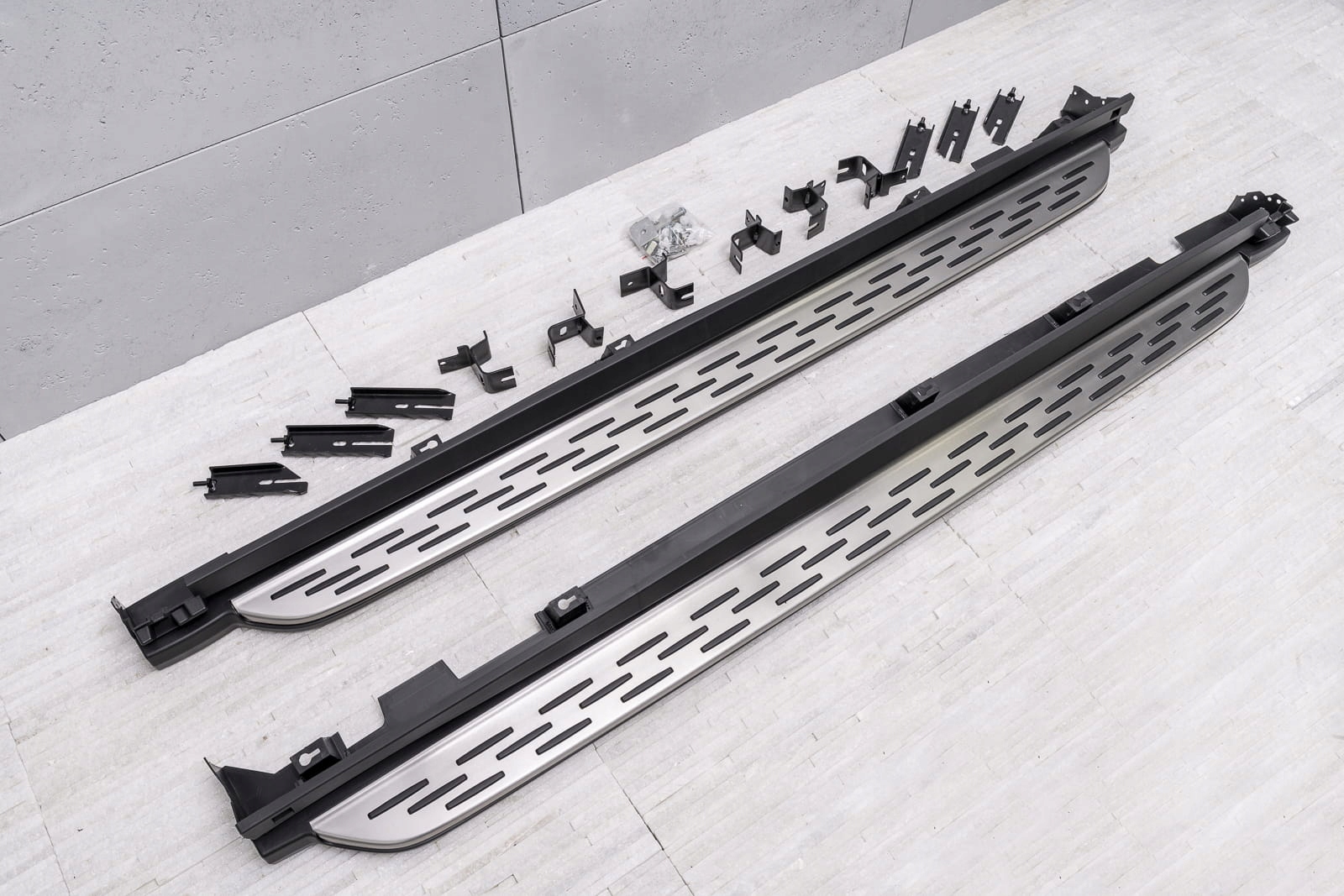 В набір входить набір підніжок (права і ліва), елементи збірки та інструкція. Пороги встановлені на заводські точки кріплення. Установка ступенів не потребує свердління додаткових отворів! Ми рекомендуємо професійну збірку в майстерні (з досвіду ми знаємо, що найкраще скористатися послугами малярних або кузовних майстерень, тому що на цих заводах найчастіше встановлюють планки, плінтуса та сходинки, тому складання для цих установок вимагає b>інтуїтивної діяльності).