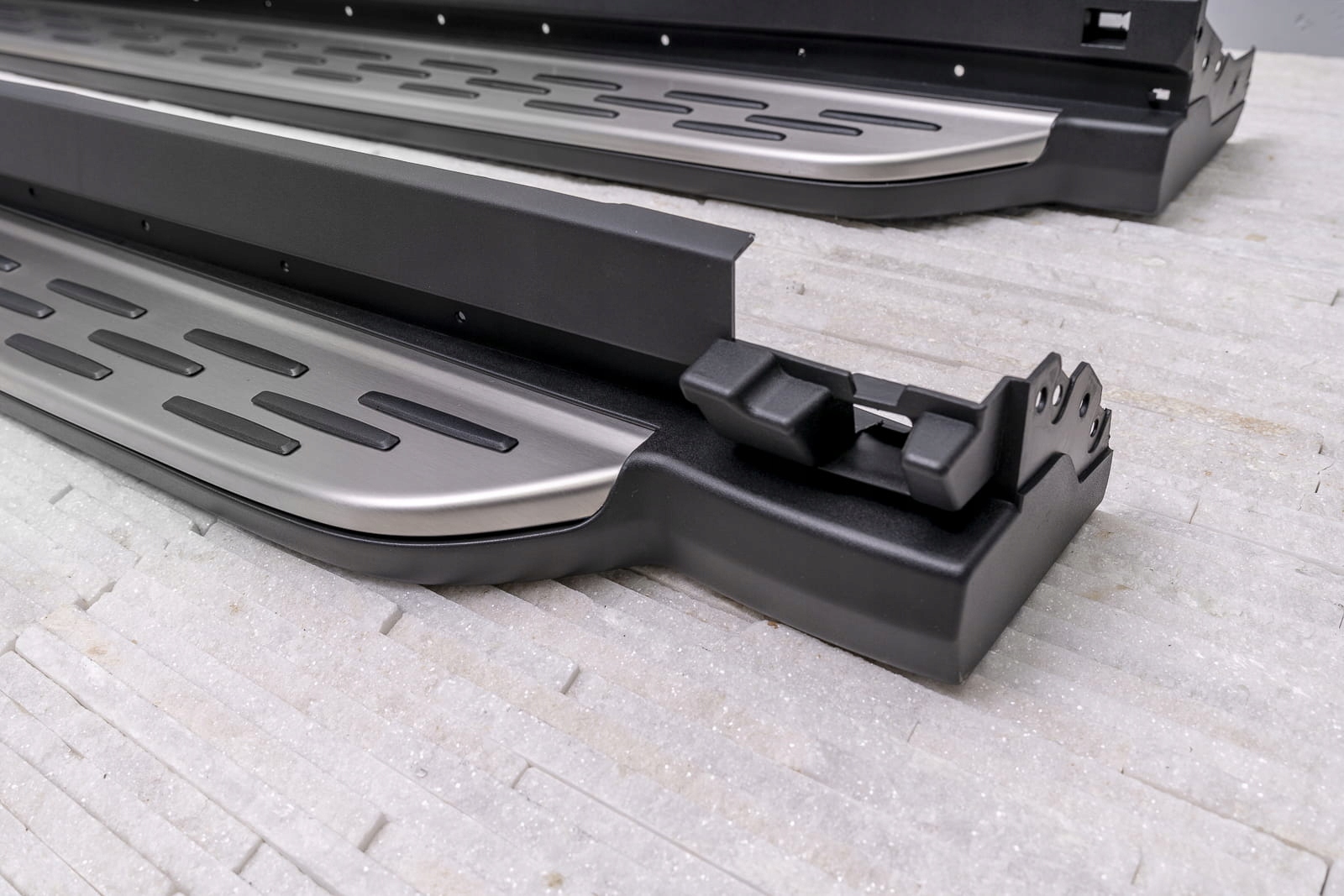 Бічні підніжки розроблено для підвищення комфорту під час входу та виходу з автомобіля, а також для забезпечення більш зручного робочого положення під час розміщення вантажів на даху автомобіля. Пороги не тільки забезпечують комфорт, але і підвищують безпеку, що особливо важливо для дітей і людей похилого віку.