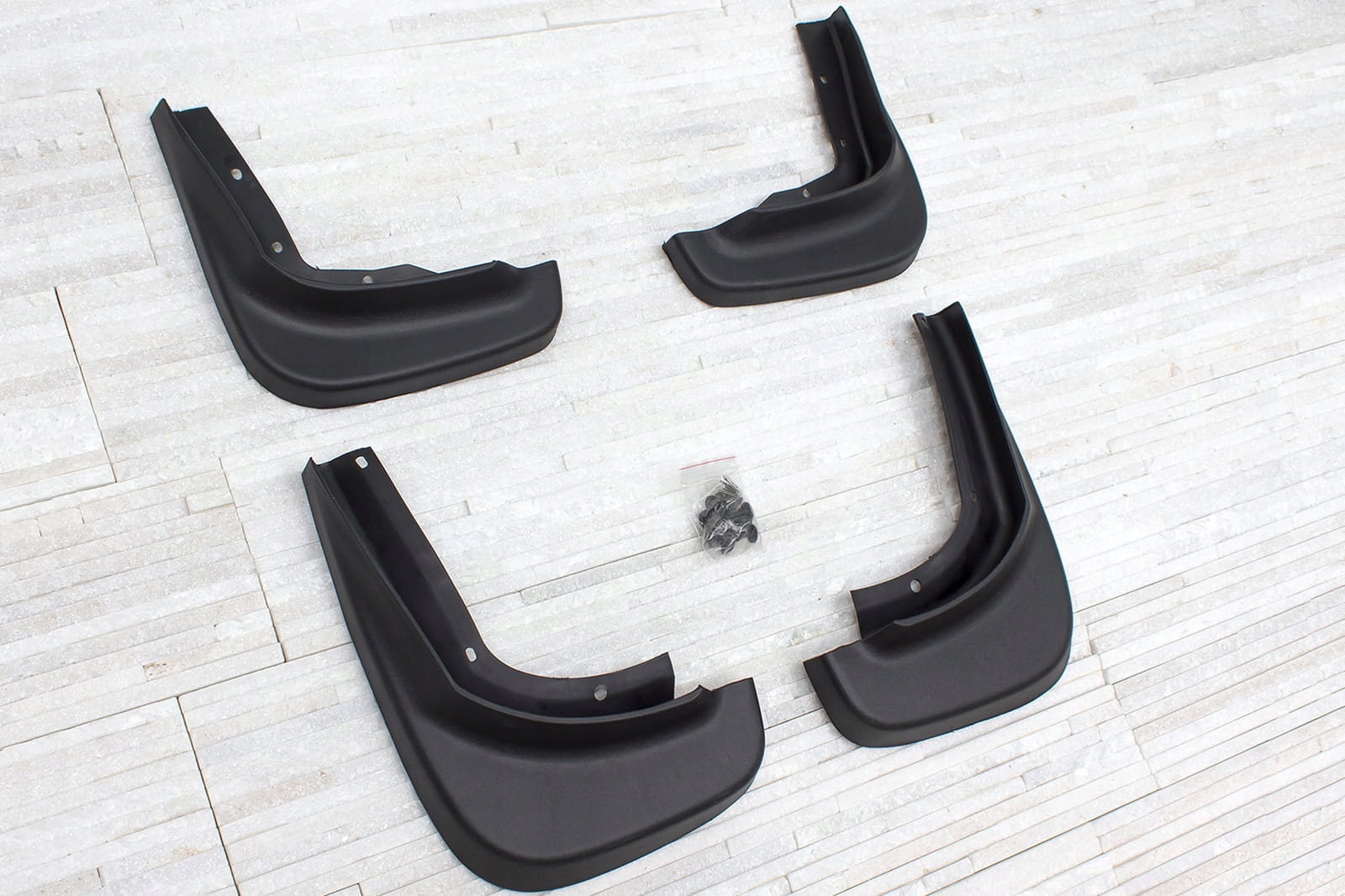 У набір входить набір із чотирьох бризговиків та елементів кріплення. Виріб встановлено на заводські місця, без додаткових доробок. Ми рекомендуємо установку в професійній майстерні.