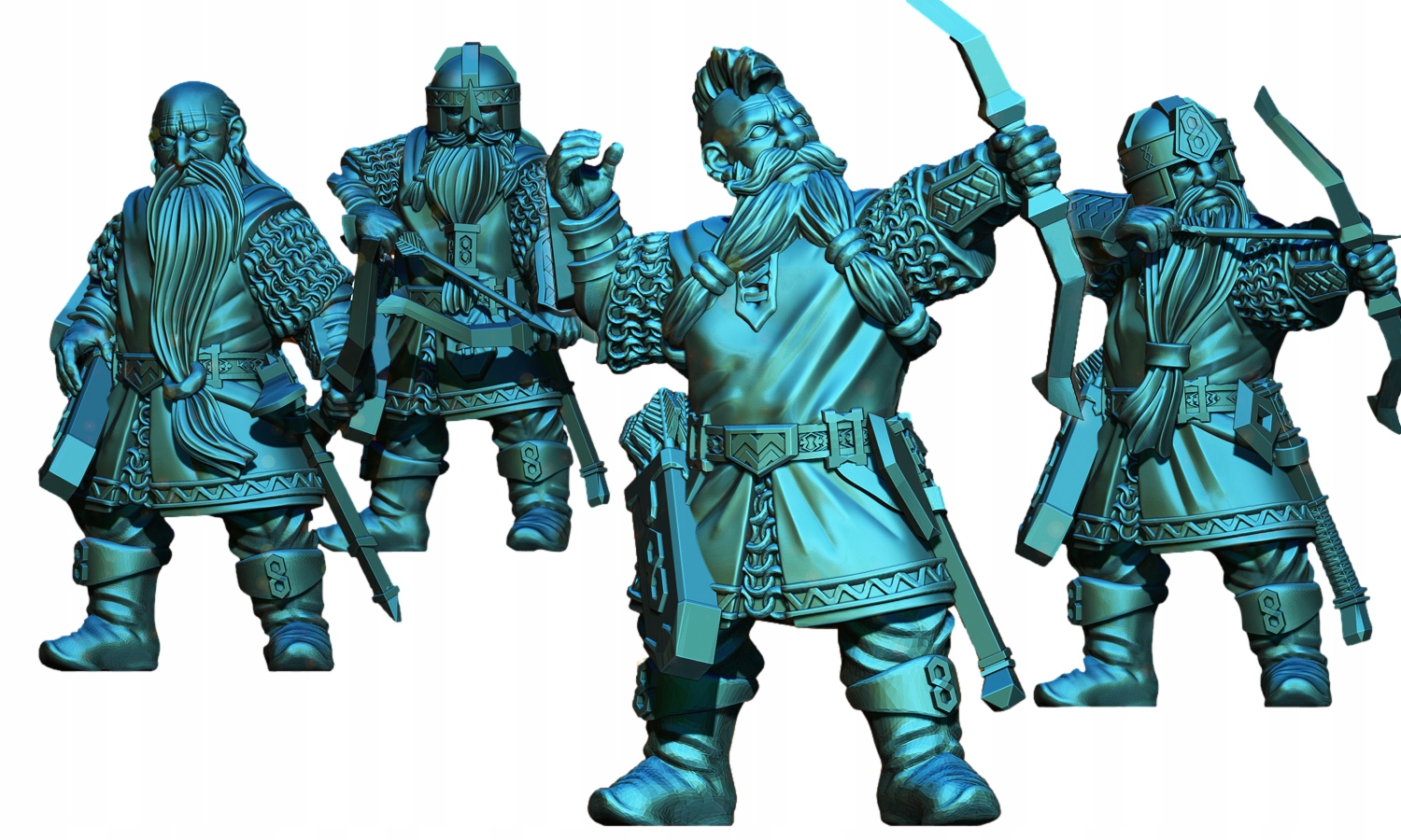 Гноми-воїни з луками – 4x – Сервісні фігурки 3D-друку для рольових або бойових ігор