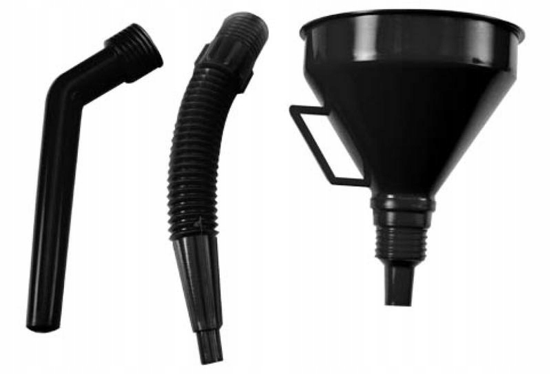 3-компонентна воронка з фільтром для палива, масла та інших робочих рідин. Оснащений 2 змінними наконечниками (один гнучкий, інший жорсткий, зігнуті під кутом 50°) для полегшення наливання. Широко використовується в гаражах, майстернях і автосервісах.