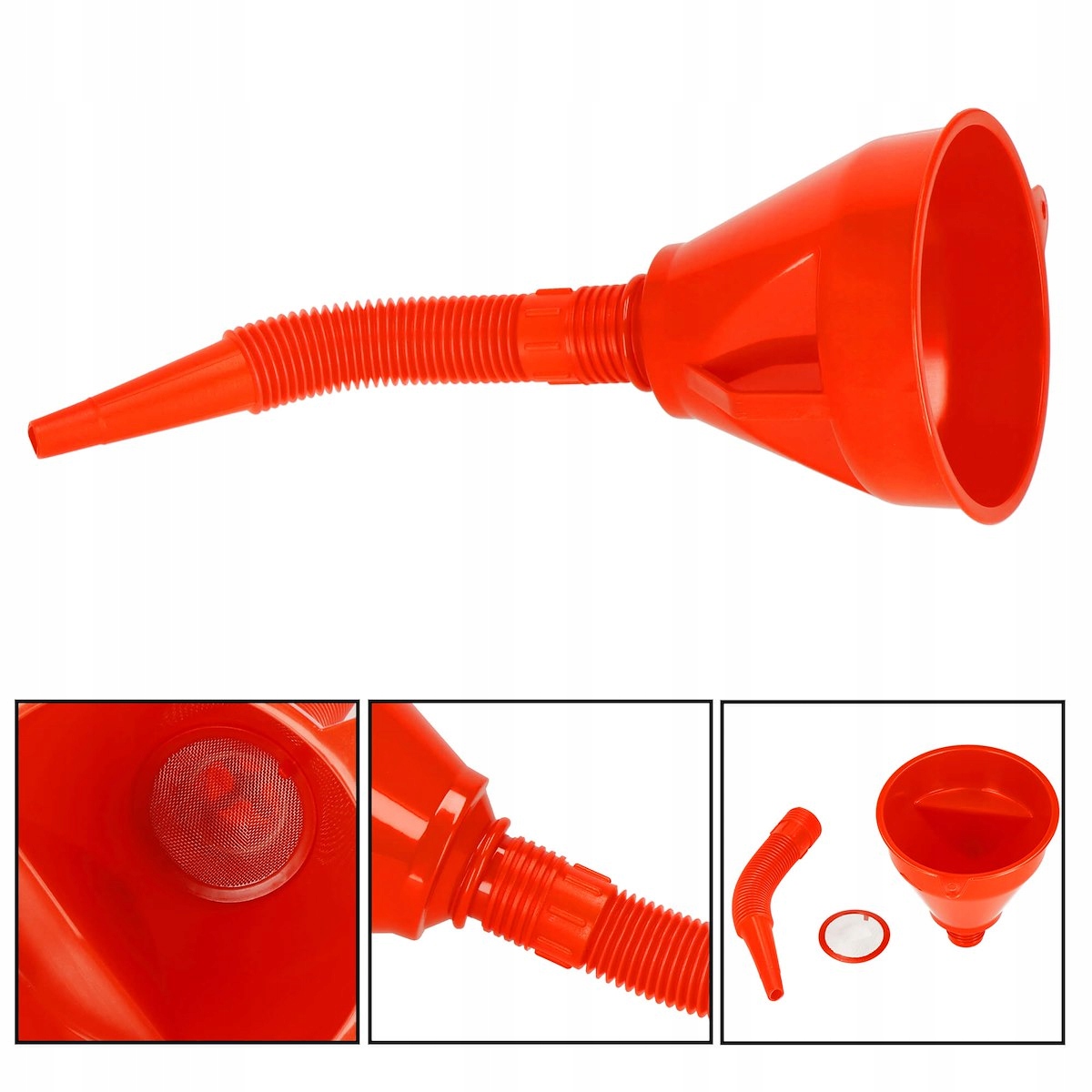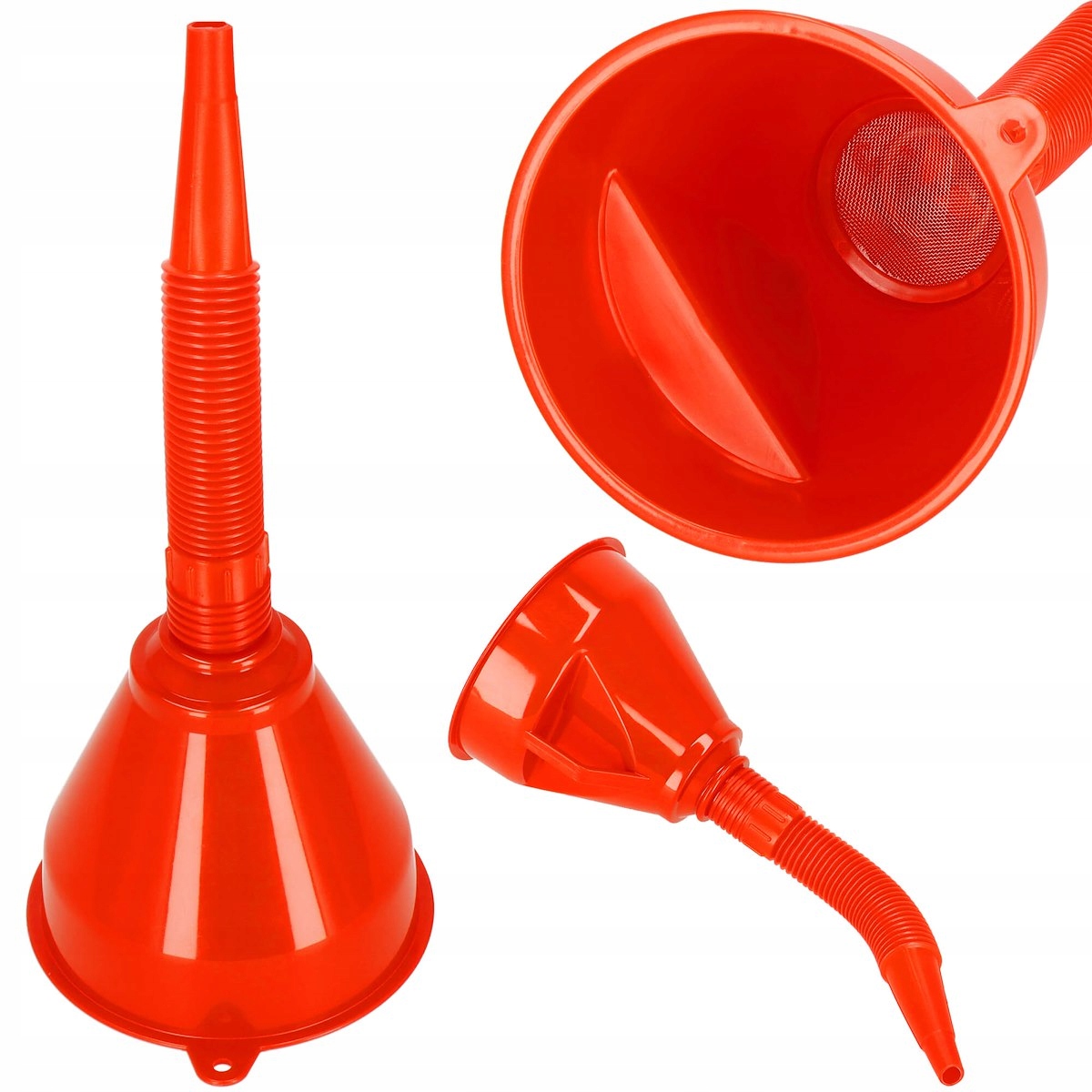 Воронка з гнучким ливником від бренду Springos® є стійкою до шкідливої діїхімічних речовин. Він оснащений фільтром, який видаляє дрібні домішки, такі як пісок або стружки, із налитої рідини.