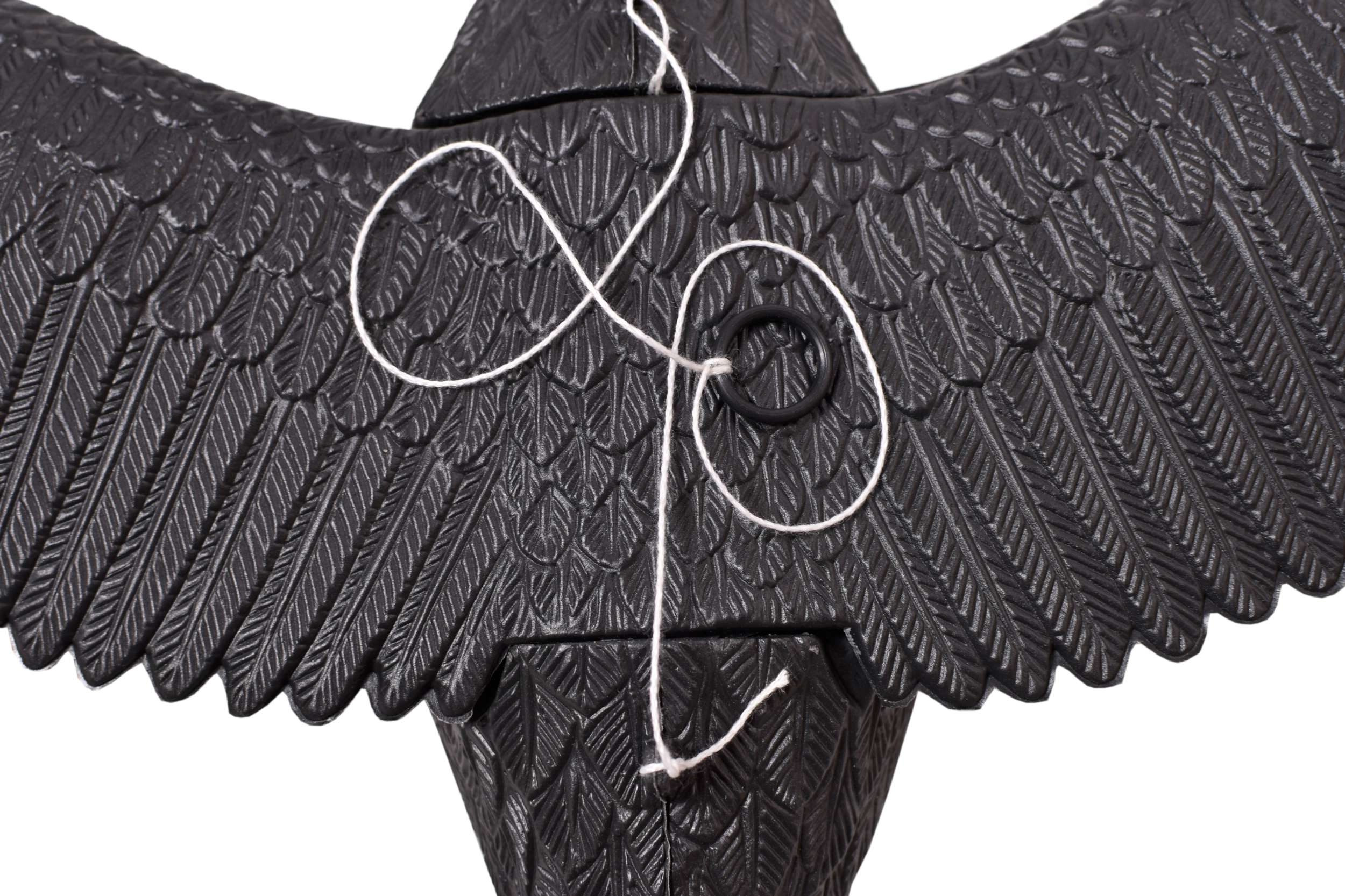 Наш ворон дуже точно імітує справжнього птаха - як зовнішнім виглядом, так і розмірами - це дуже корисно та ефектно.
