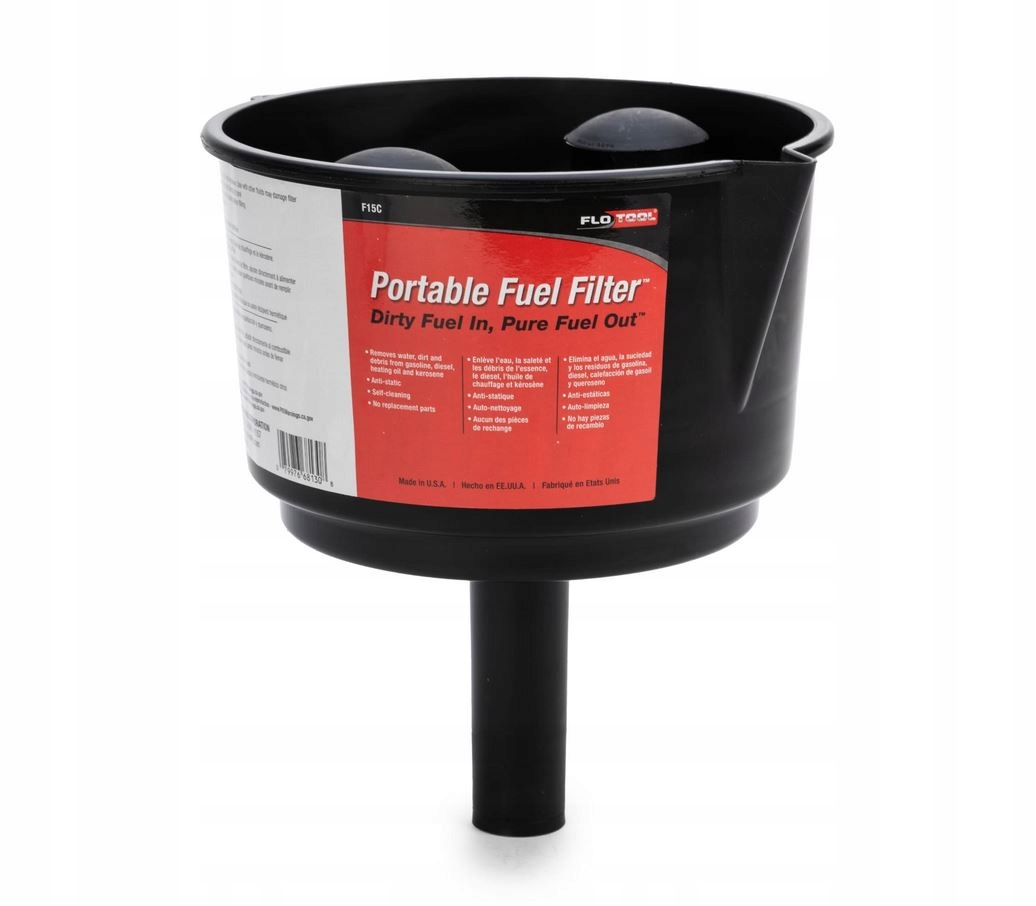 Коли паливо виливається воронкою з фільтром, водою та брудом не проходить через покриття фторо-полімеру та сталевого фільтра.