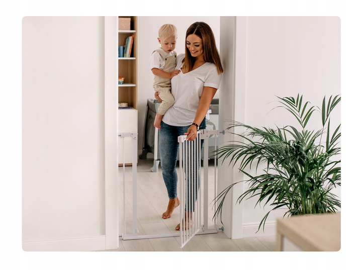 Wide діапазон від 75 до 85 см. Додавши подовжувачі, які входять до комплекту, ви отримаєте бар’єр до 105 см. Після додавання додаткового подовжувача ворота також можна використовувати для захисту сходів.