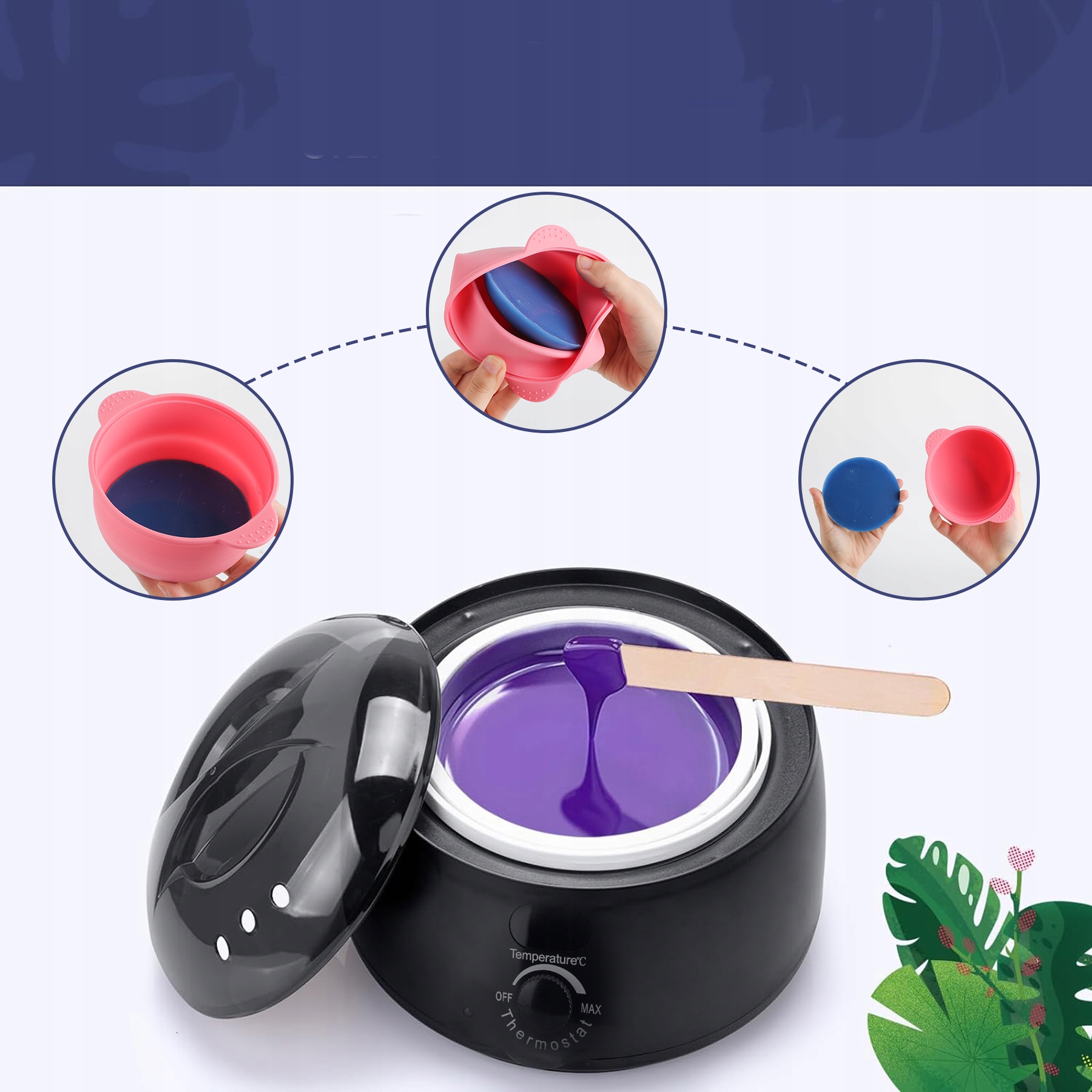 ➡️Як очистити контейнер? Щоб очистити контейнер, спочатку використайте залишки воску. Коли машину для депіляції вимкнено, але все ще тепло, використовуйте бавовняні муслінові смужки або паперові рушники, щоб очистити її. Ви також можете використовувати невелику кількість олії для очищення.