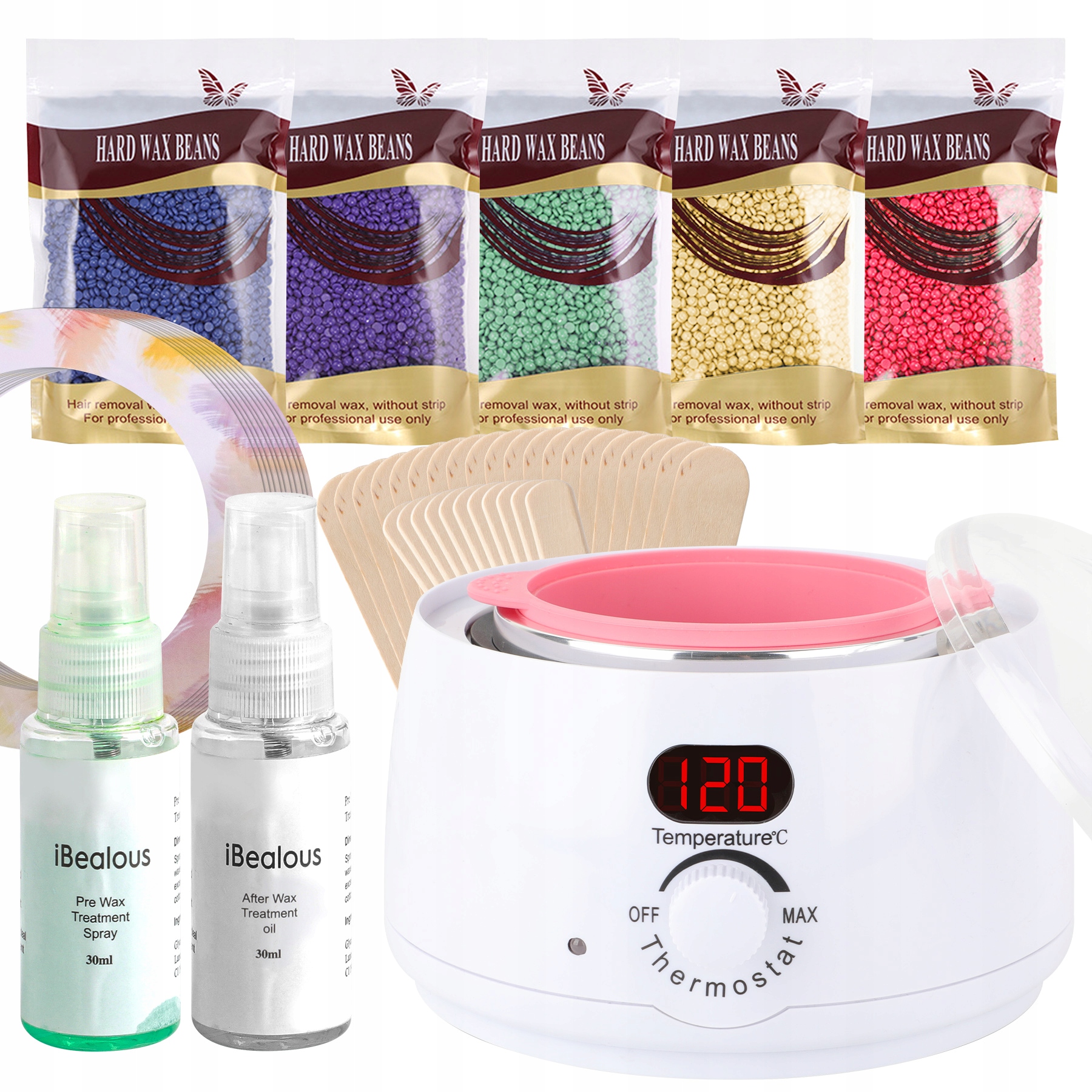 ВОСКОВИЙ НАБІР ДЛЯ ДЕПІЛЯЦІЇ Нагрівач воску 5х ТВЕРДИЙ ВІСК У ГРАНУЛАХ LED