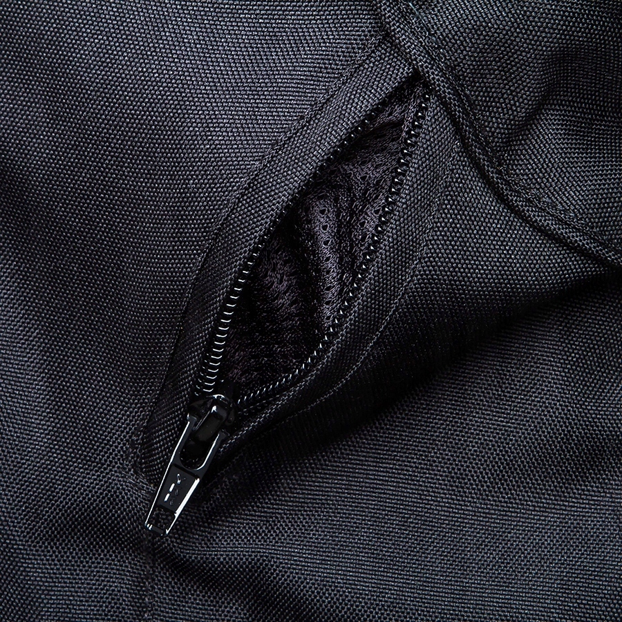 Куртка оснащена вентиляційною системою, яка ефективно складається з чотирьох регульованих отворів вентиляції: два спереду на висоті грудної клітки та два ззаду з боків. Цей розподіл дозволяє максимально використати тіло мотоцикліста та рух повітря, що виникає під час руху. Циркуляція повітря всередині куртки додатково підтримується сильною, стійкою до сльози сітчастими.